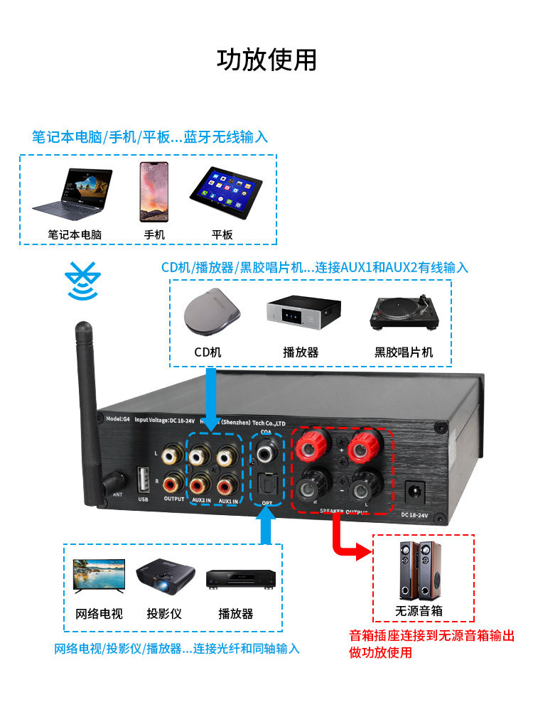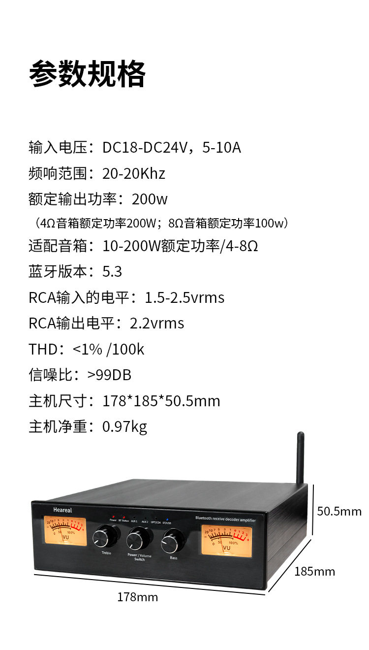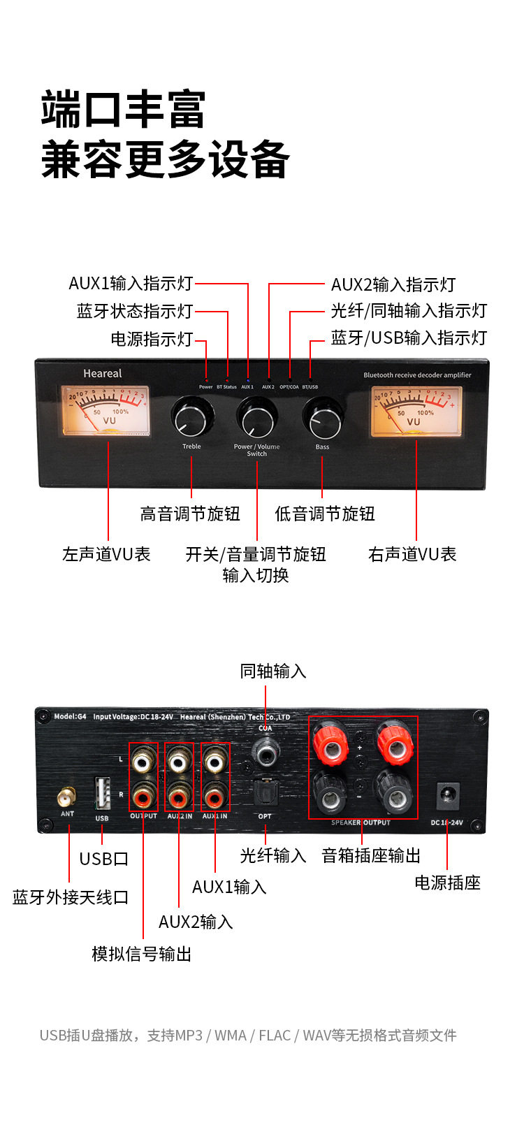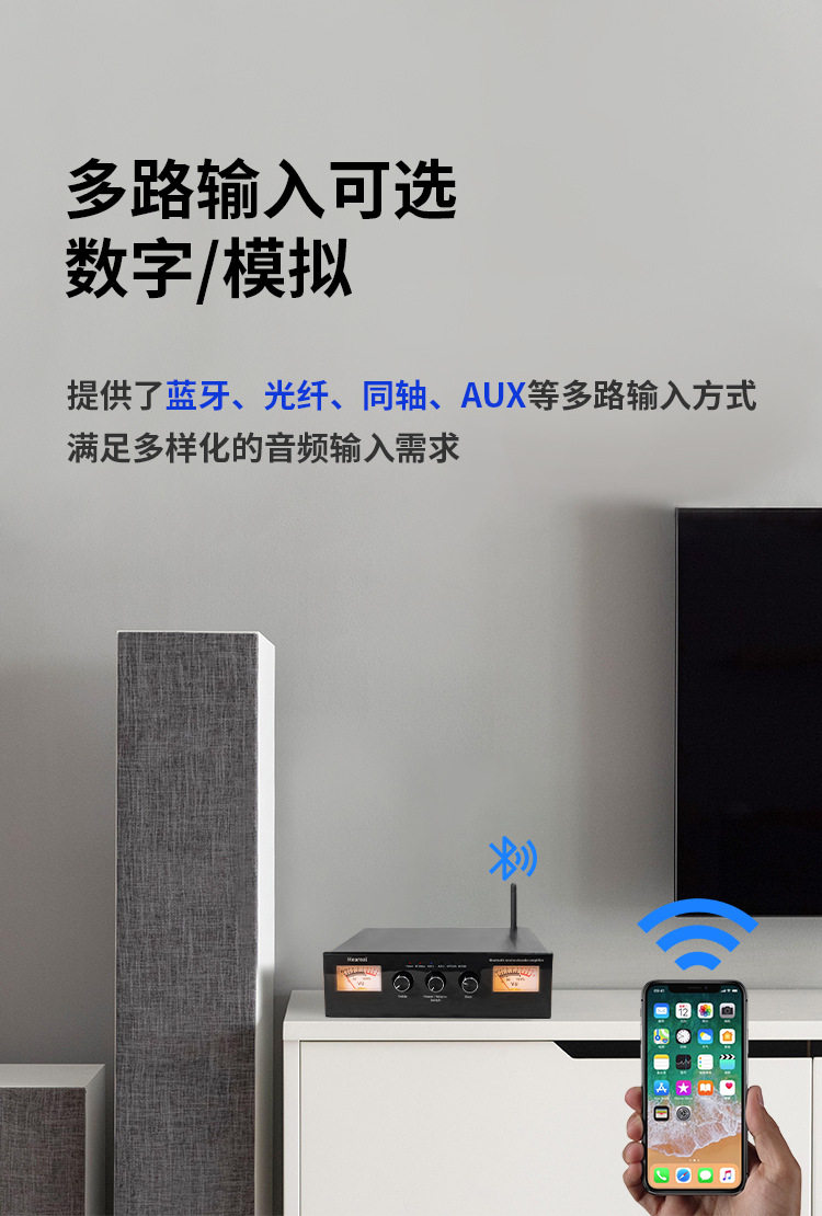 Huan Ling G4 Bluetooth Power Amplifier Coaxial Fiber Double Lotus Input HiFi Stereo High and Bass Adjustable VU Meter
