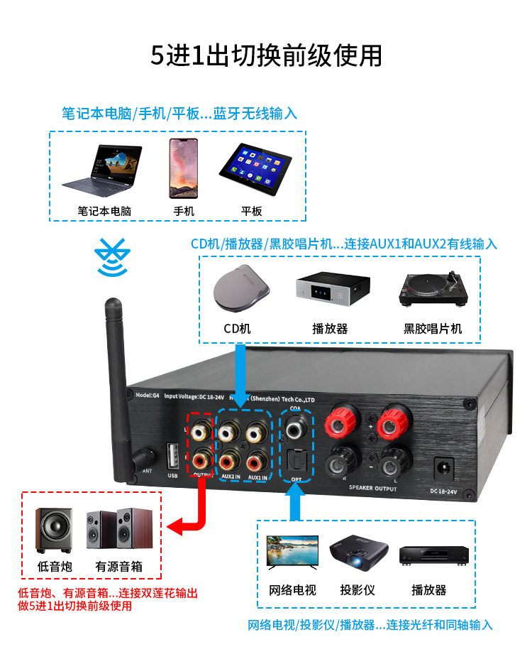 | Receiving method | Bluetooth 5.3, coaxial, optical fiber, double lotus |
