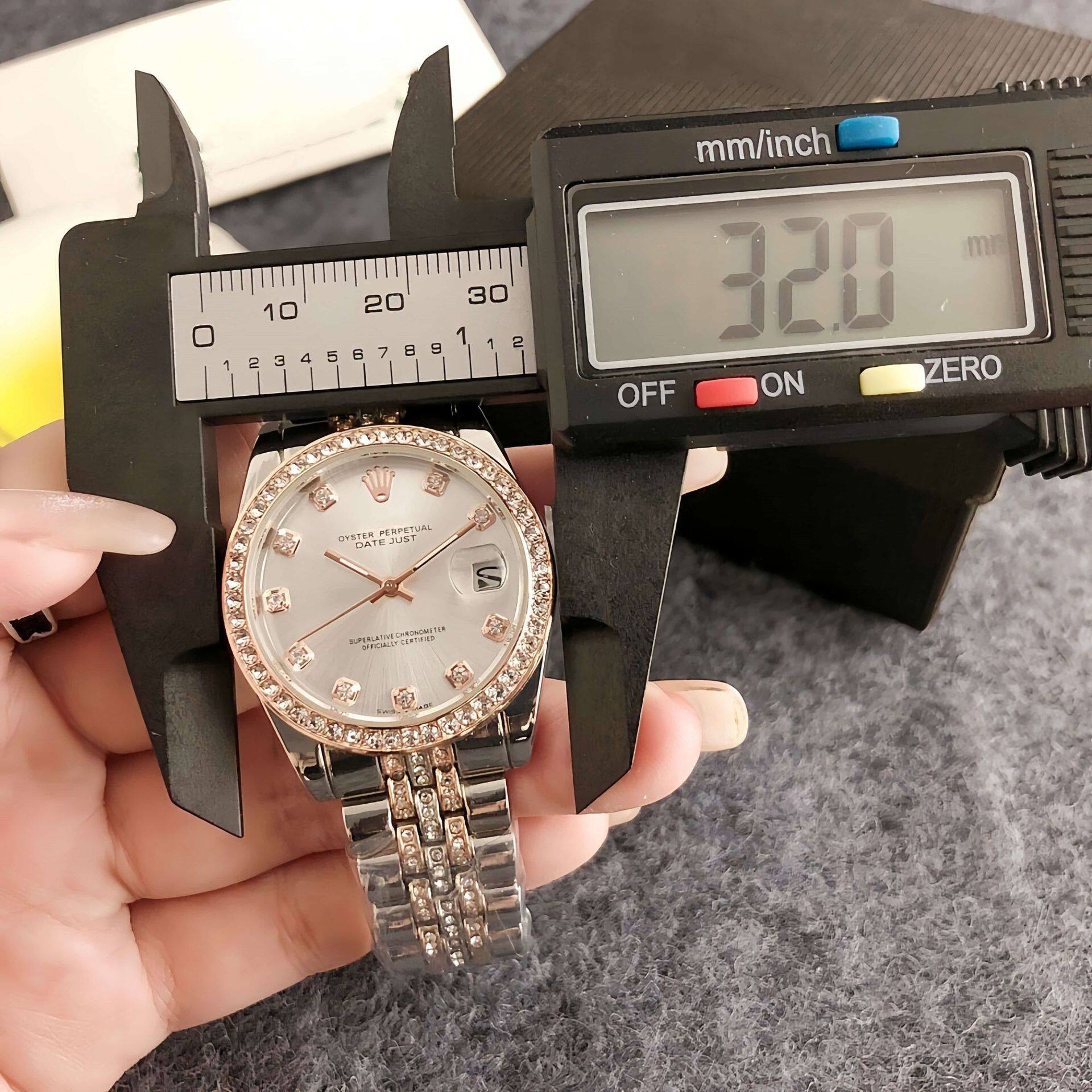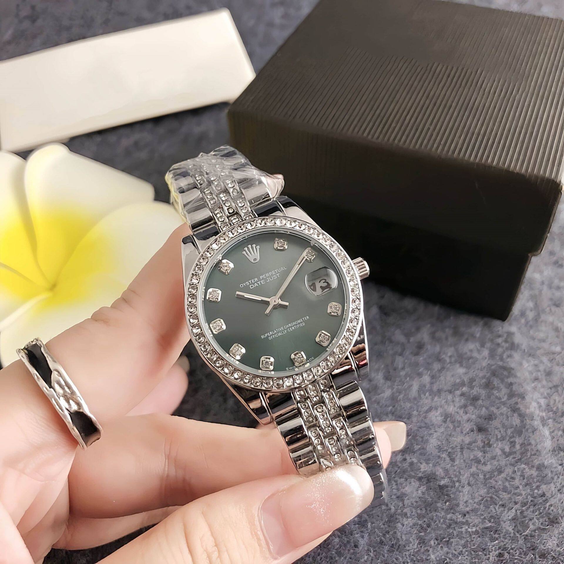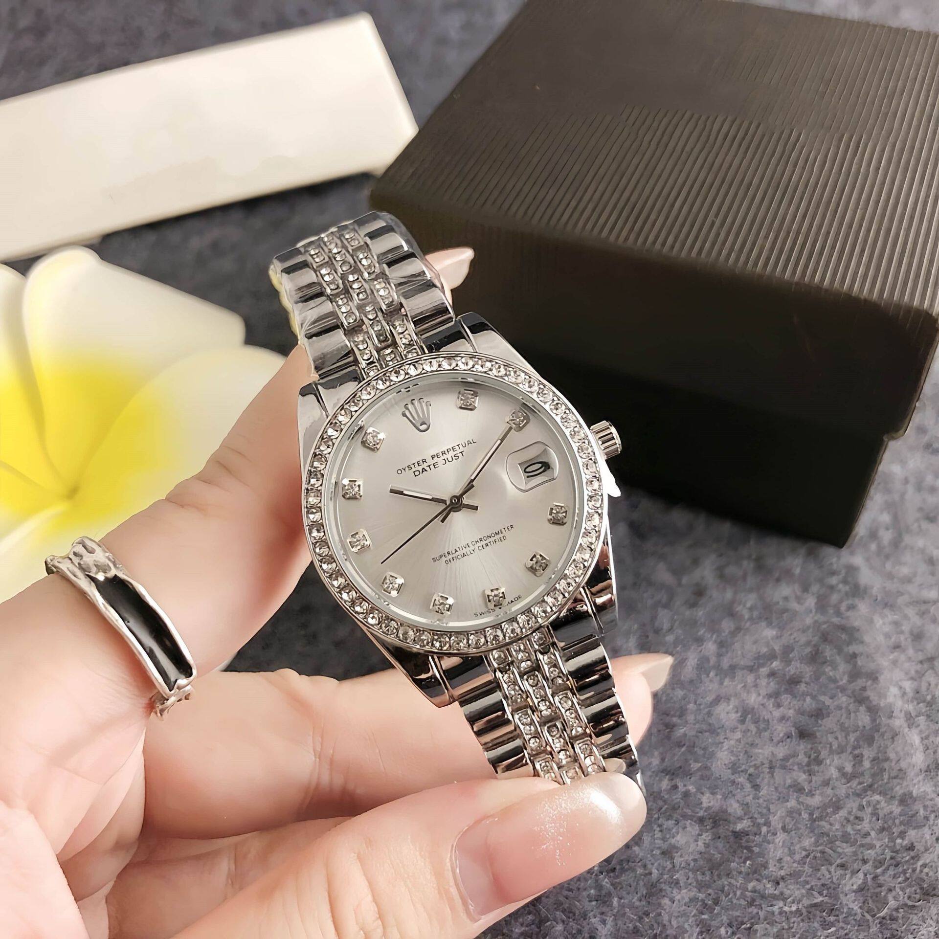 Korean-style business women's trendy fashion neutral watch round diamond large dial women's watch diamond steel band women's watch