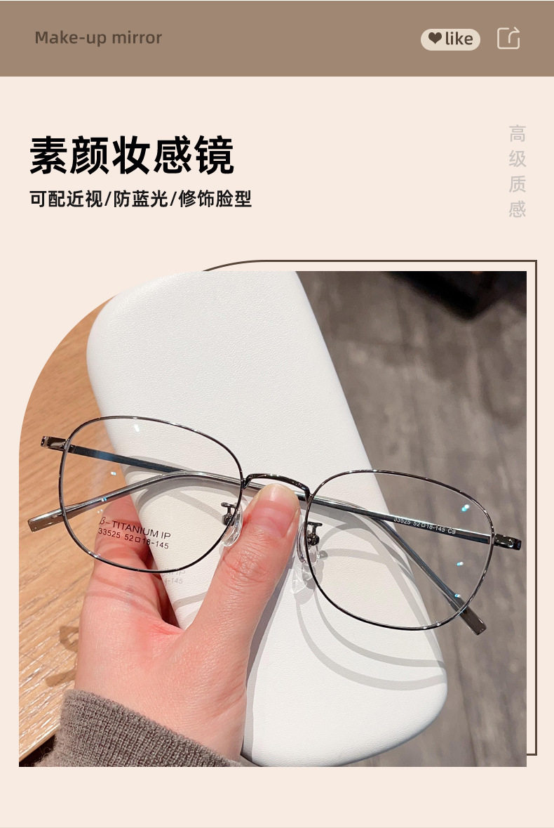 New Ultra-Light Internet Celebrity Non-Magnetic Metal Retro Round Frame Glasses Frame for Women Without Makeup, Which Can Be Equipped with Prescription Glasses Frames