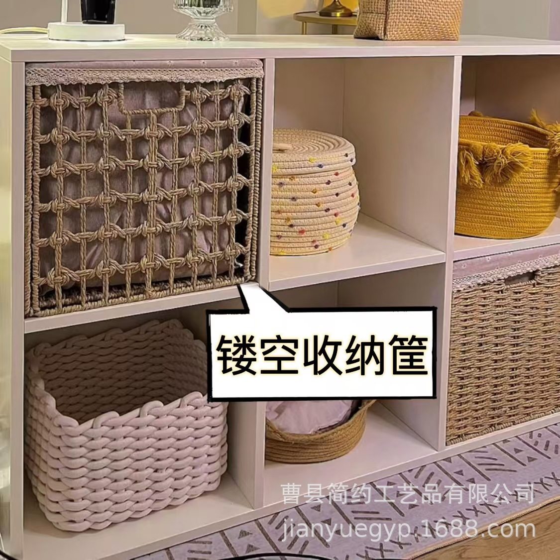 Foldable Hollow Rattan Storage Basket Desktop Sundries Toy Storage Box Household Clothes Storage Box