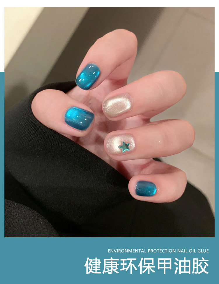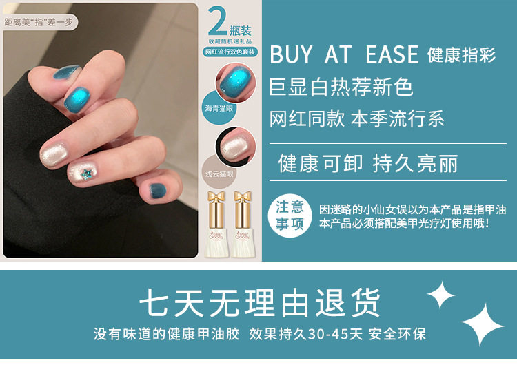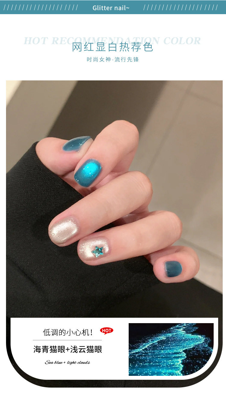 Spring and Summer Blue Cat Eye Nail Polish 2026 New Trendy Internet Celebrity Dazzling White-Enhancing Two-Tone Set for Nail Art