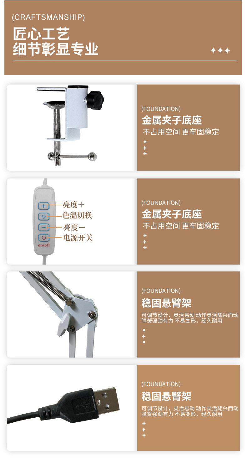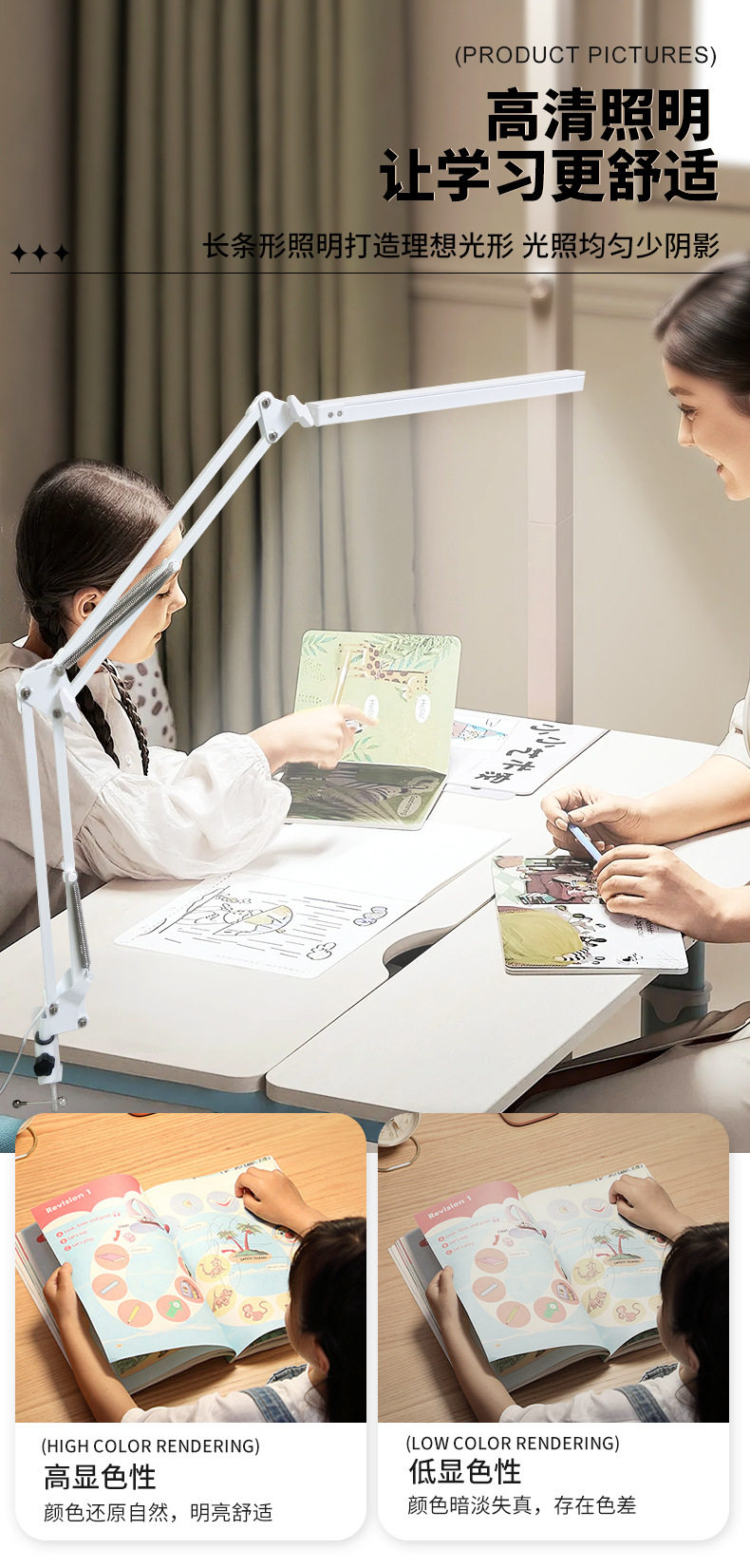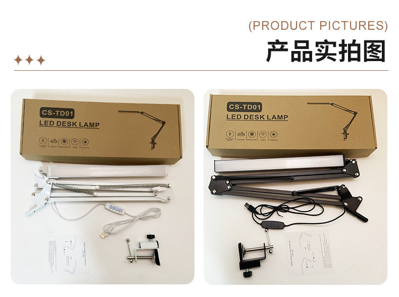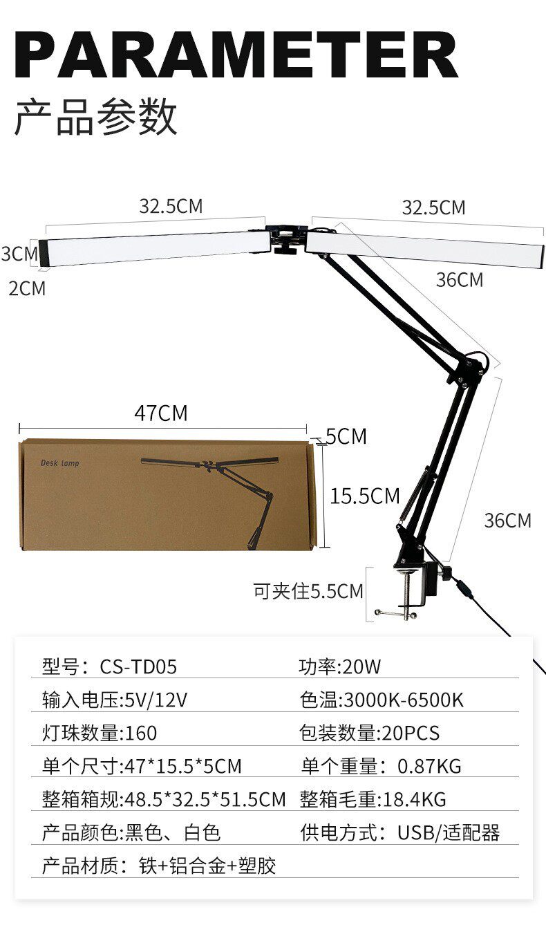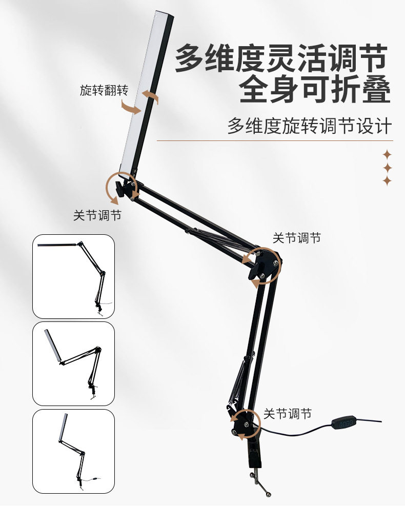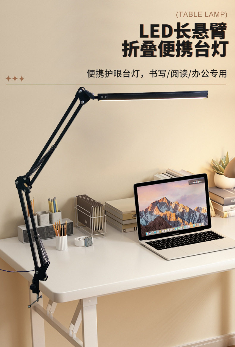 Cross-Border Eye Protection Desk Lamp Long Arm Clip Lamp American Portable Foldableing Lamp Universal Desktop Learning Lighting Led Lamp