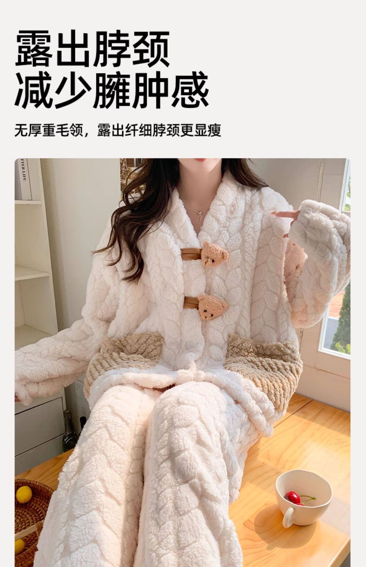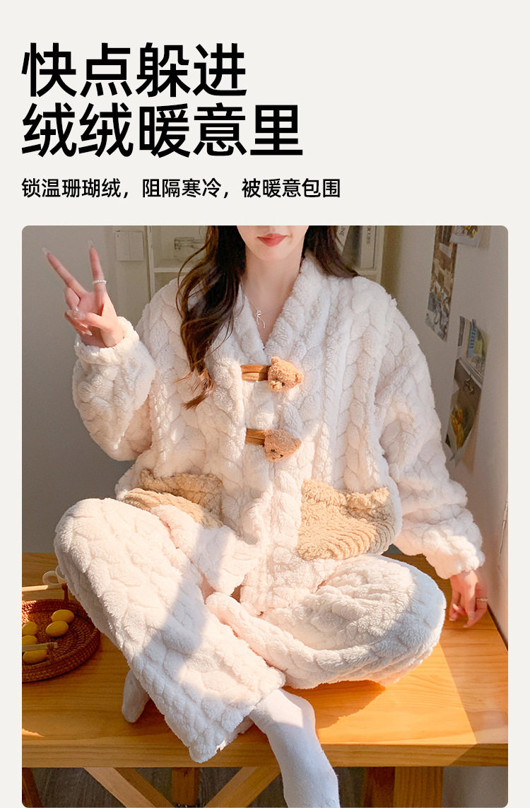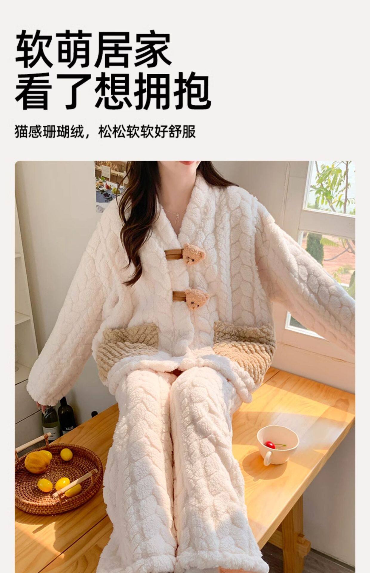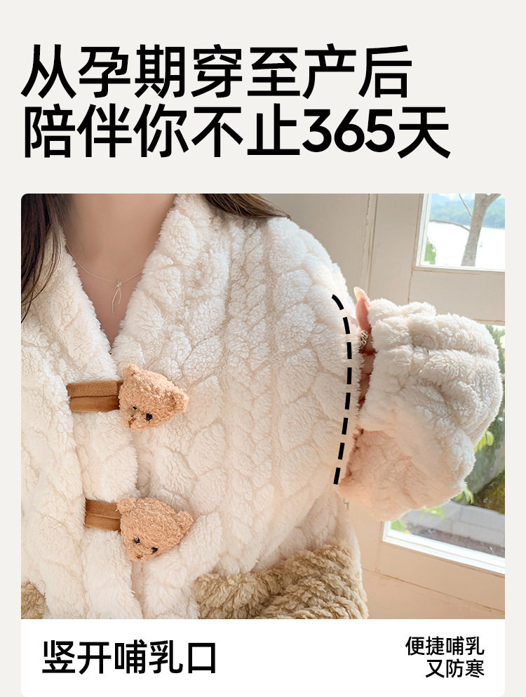 Pregnant Women's Pajamas Autumn and Winter Monthly Clothing Postpartum Thickened Coral Fleece for Breast-feeding in November Home Clothing for Women