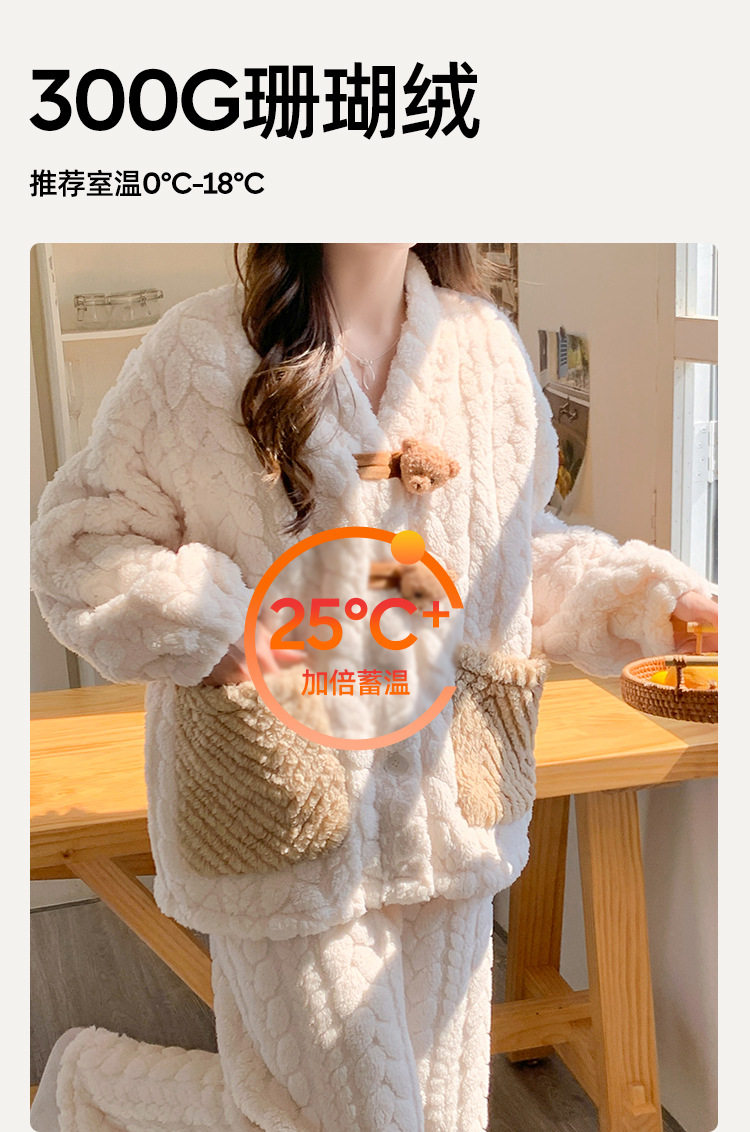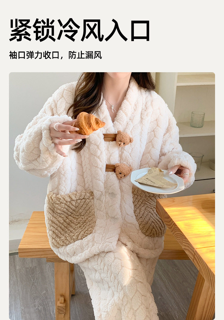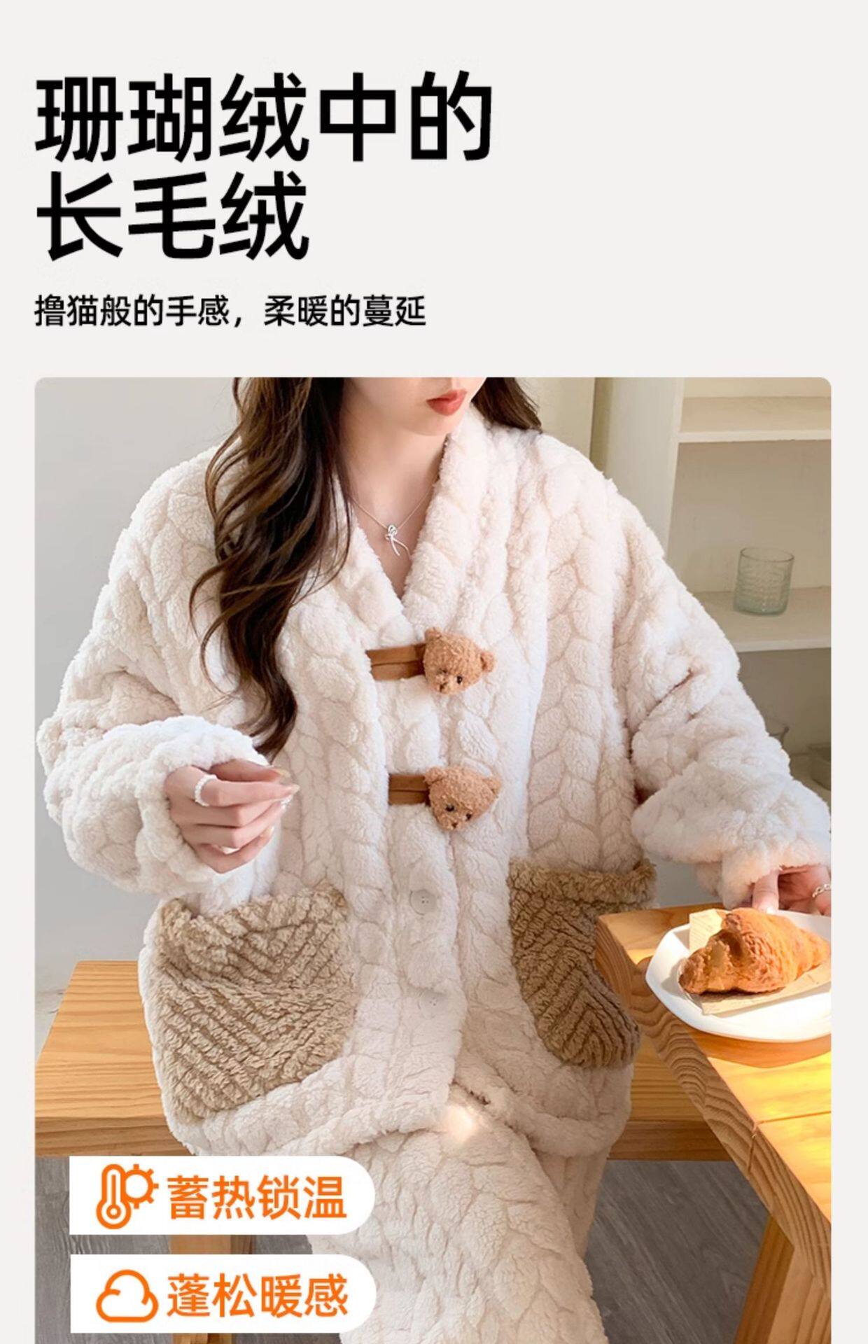 Pregnant Women's Pajamas Autumn and Winter Monthly Clothing Postpartum Thickened Coral Fleece for Breast-feeding in November Home Clothing for Women