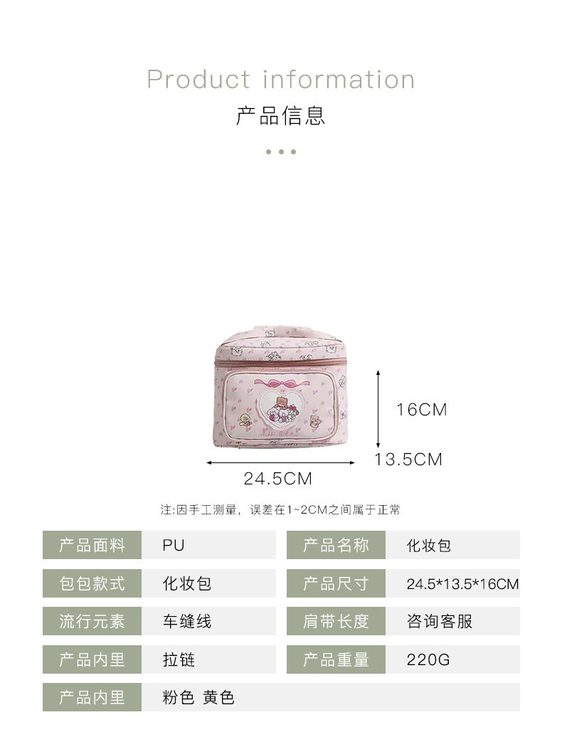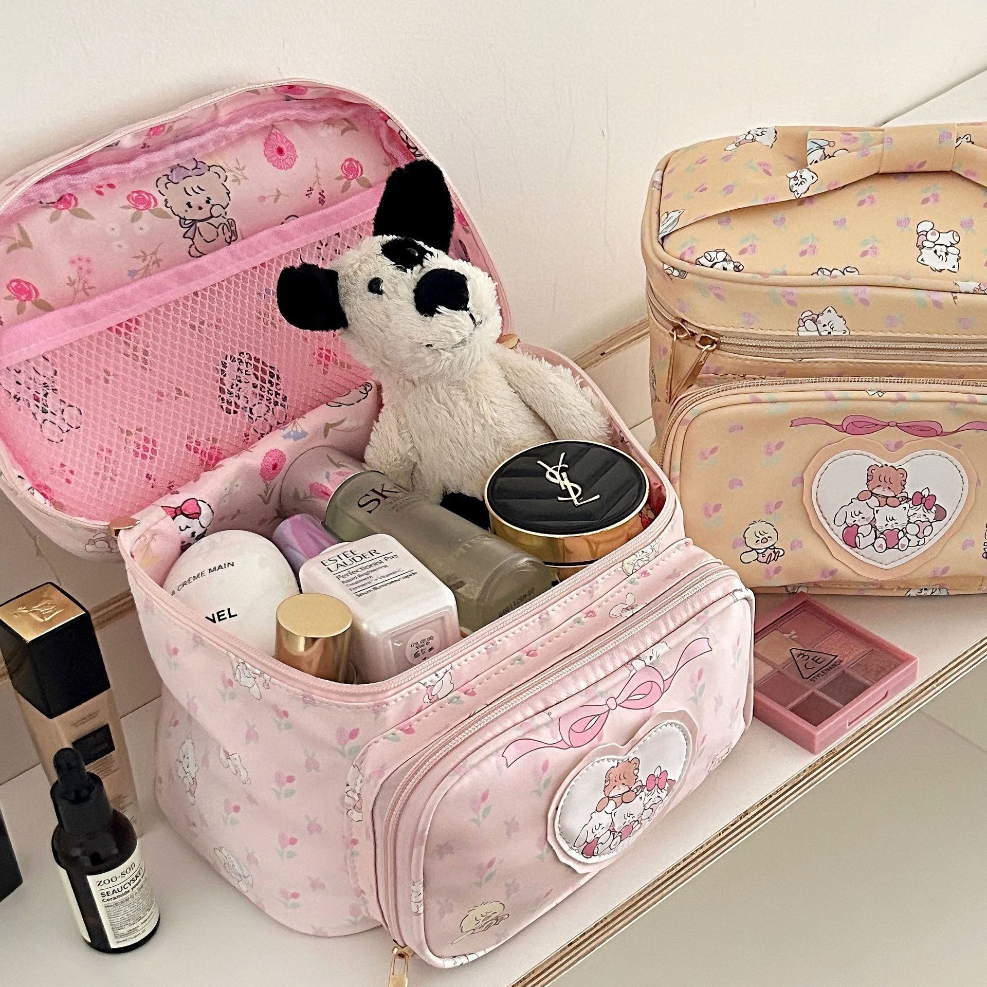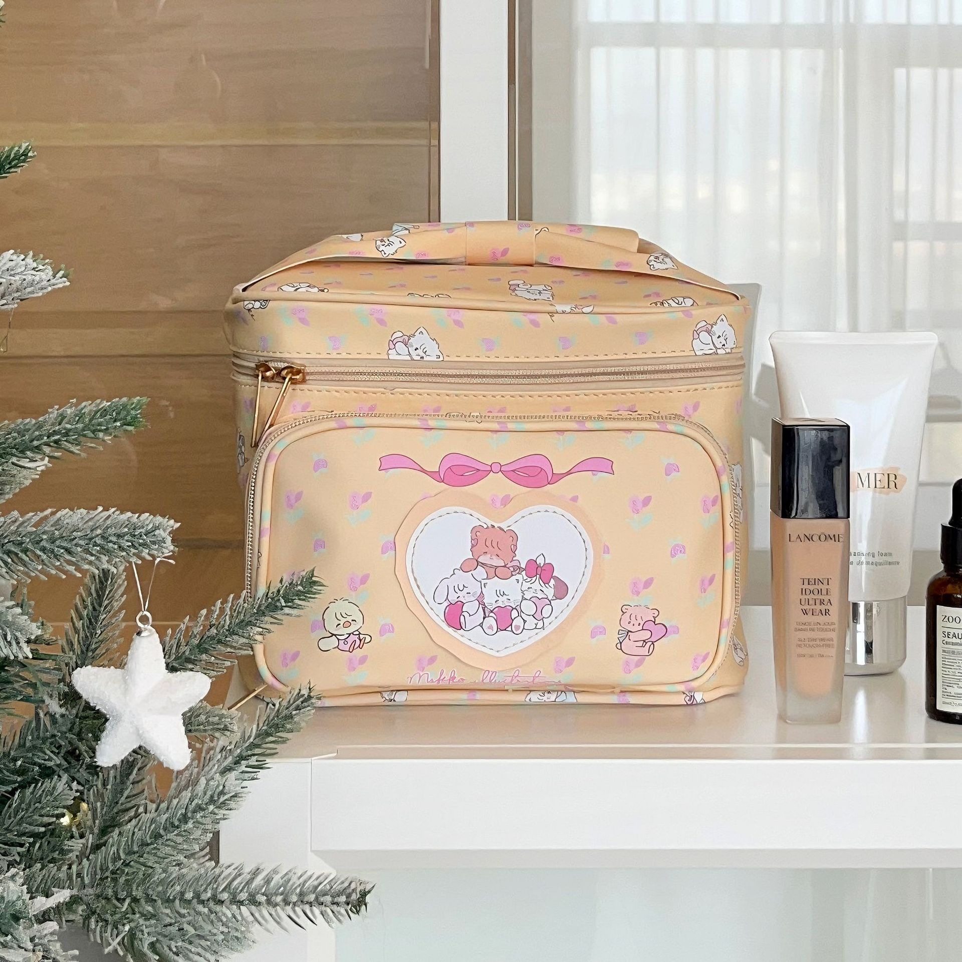 New Cute Princess Makeup Bag Women's Mikko Girl's Heart Storage Bag Large Capacity Travel Square Portable Bag