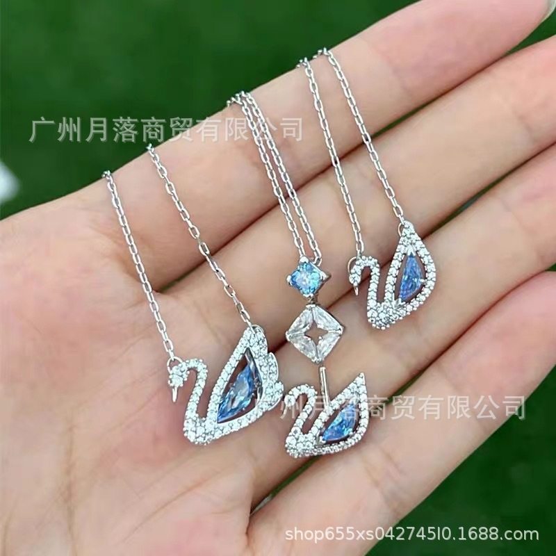 Shijia High Version 1:1 Blue Gradient Swan Necklace Women's Swarovski Black Swan Clavicle Chain Manufacturer Drop Shipping