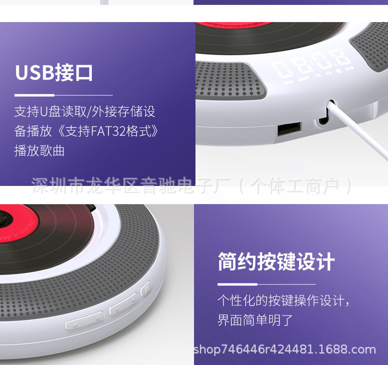 Kc-608 Home Portable Bluetooth Mp3 Speaker Round Wireless Repeater Learning Dual Speaker Audio Cd Player