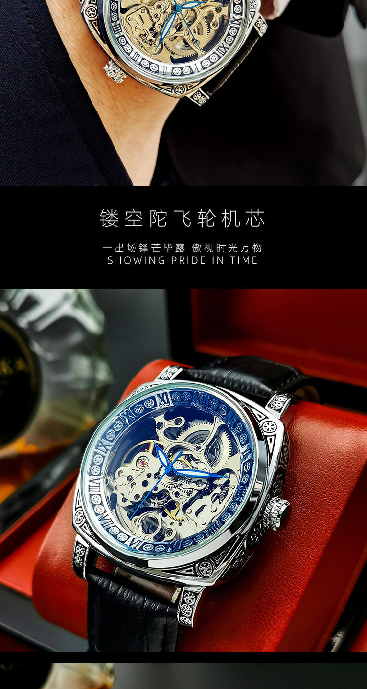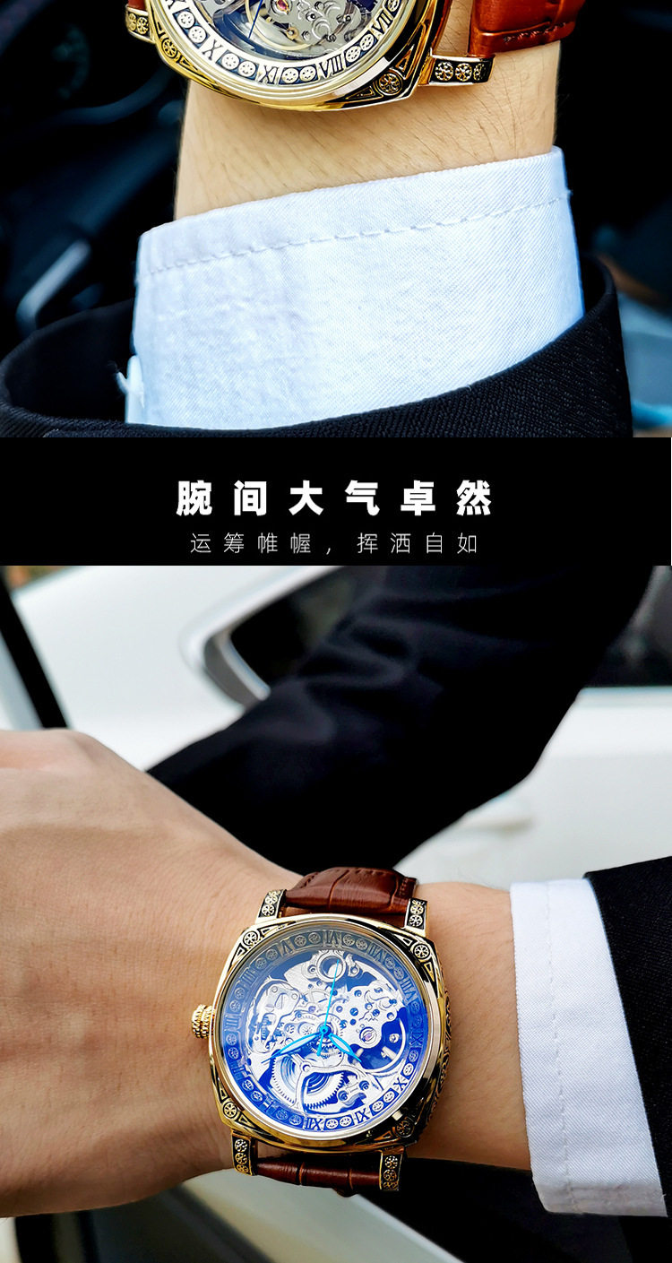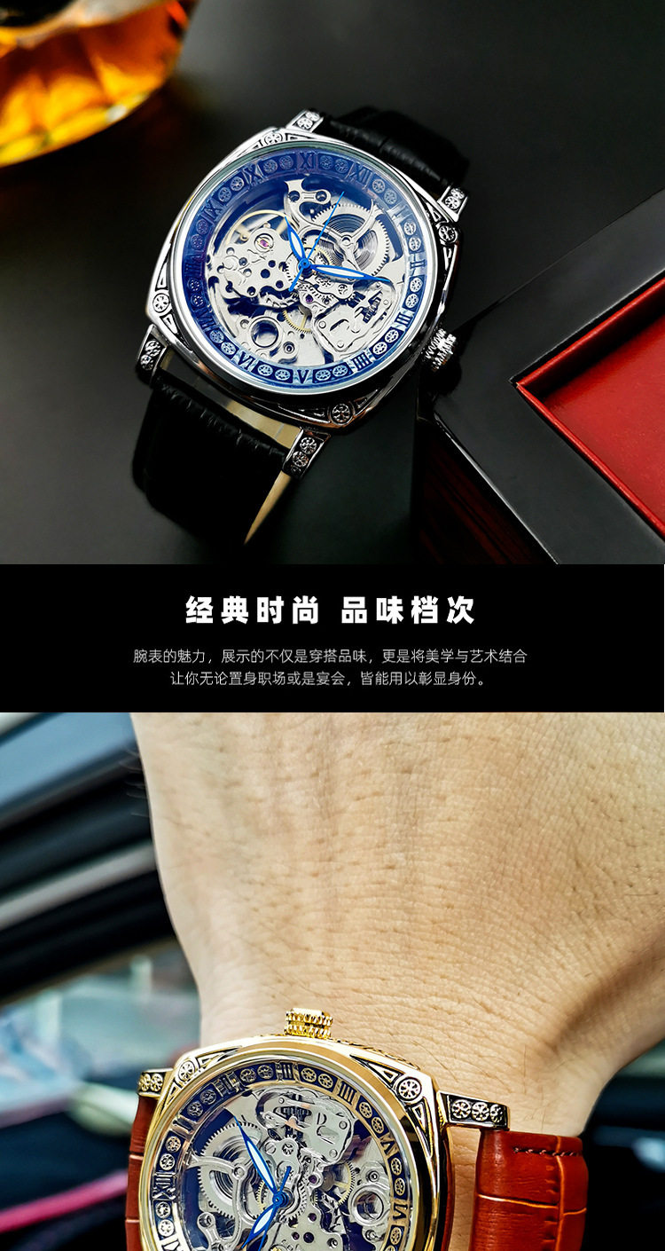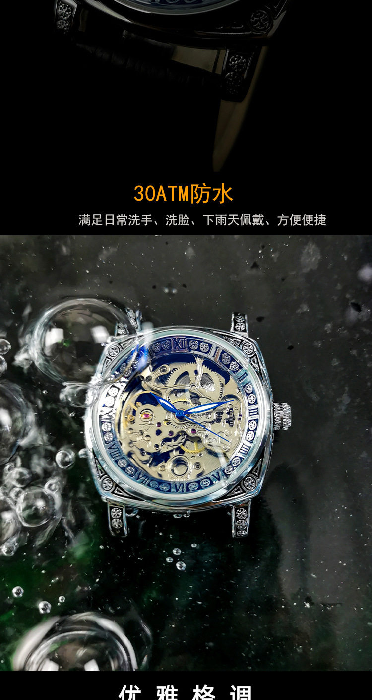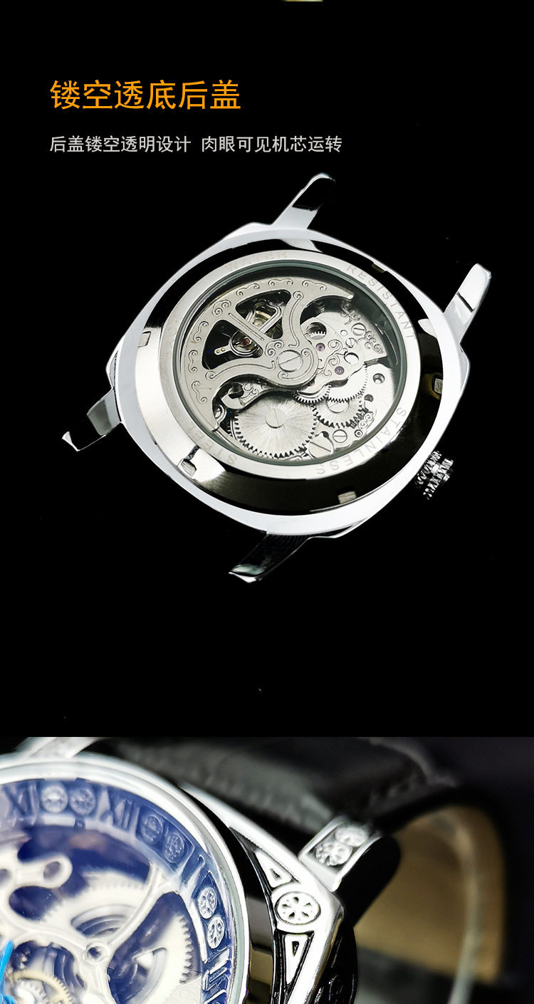 Square Watch Men's Double-Sided Hollow Tourbillon Mechanical Watch Luminous Automatic Men's Watch