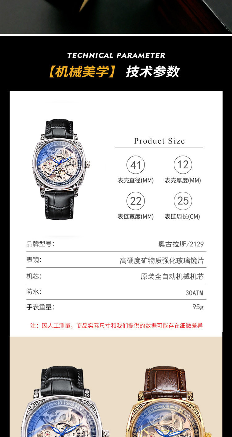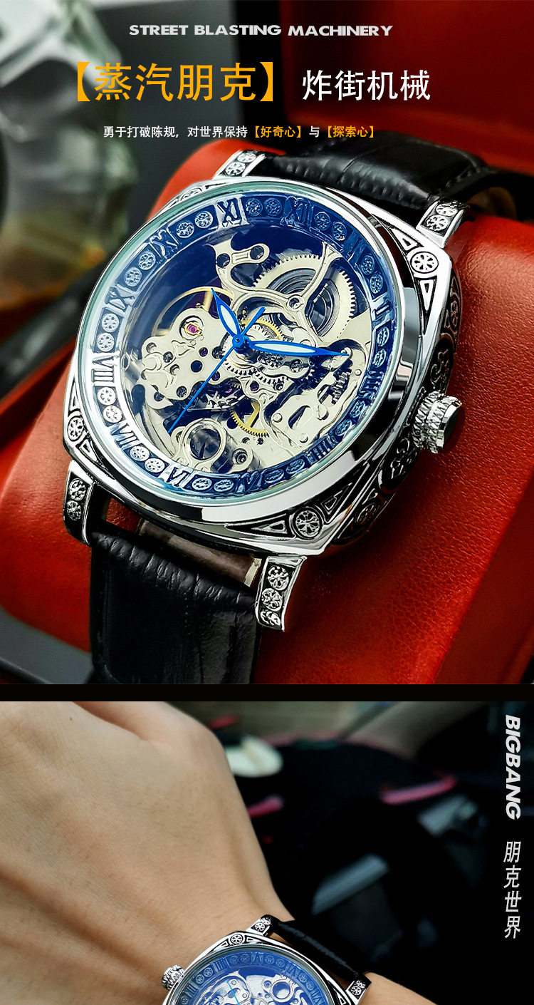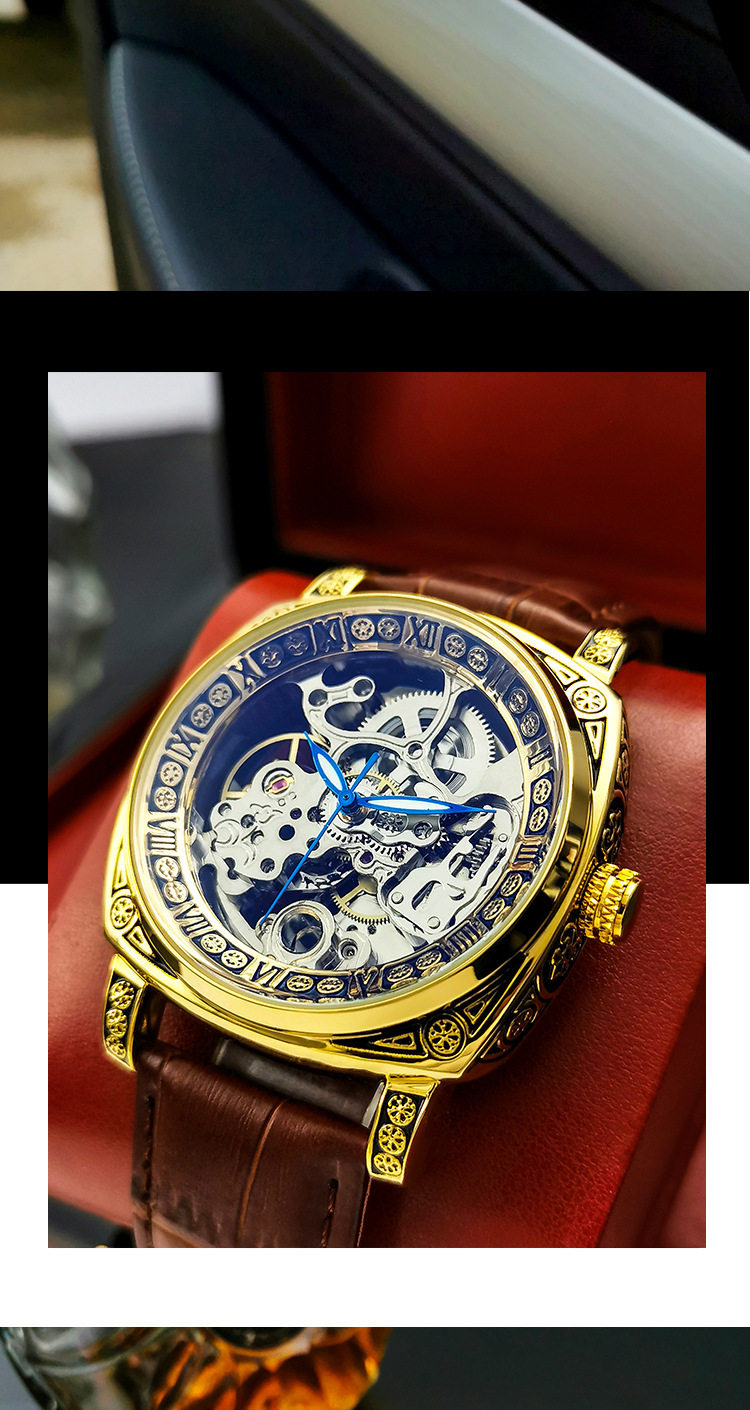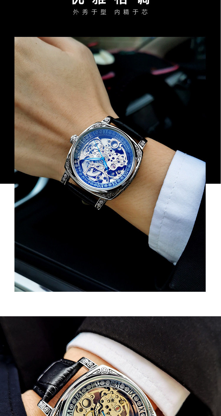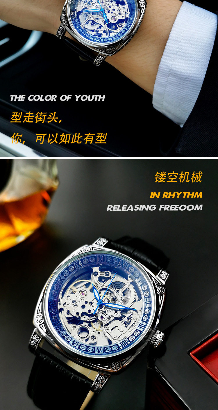 Square Watch Men's Double-Sided Hollow Tourbillon Mechanical Watch Luminous Automatic Men's Watch