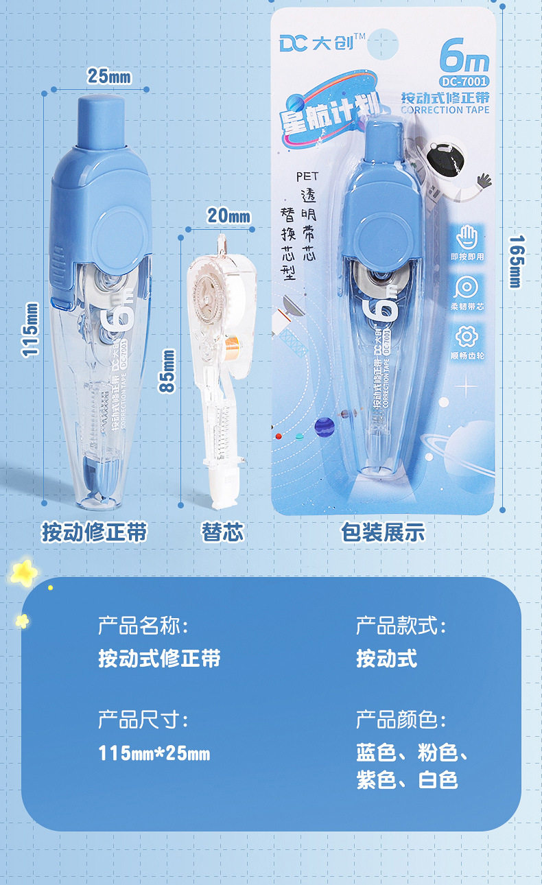 Daiso Press Correction Tape Wholesale Replaceable Core High-Value Ins Japanese Style Portable Correction Tape Stationery Correction Tape