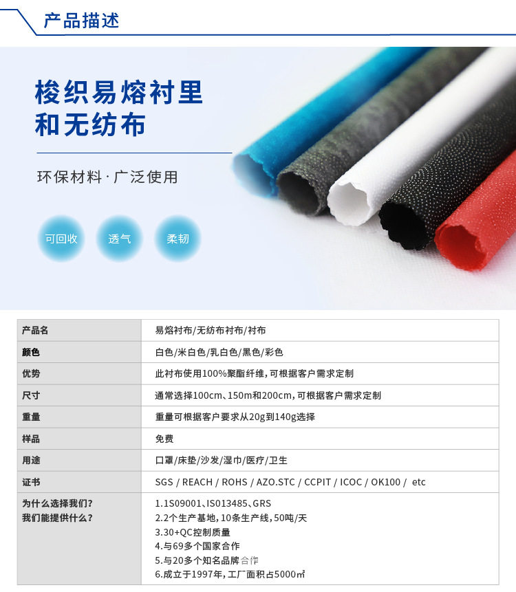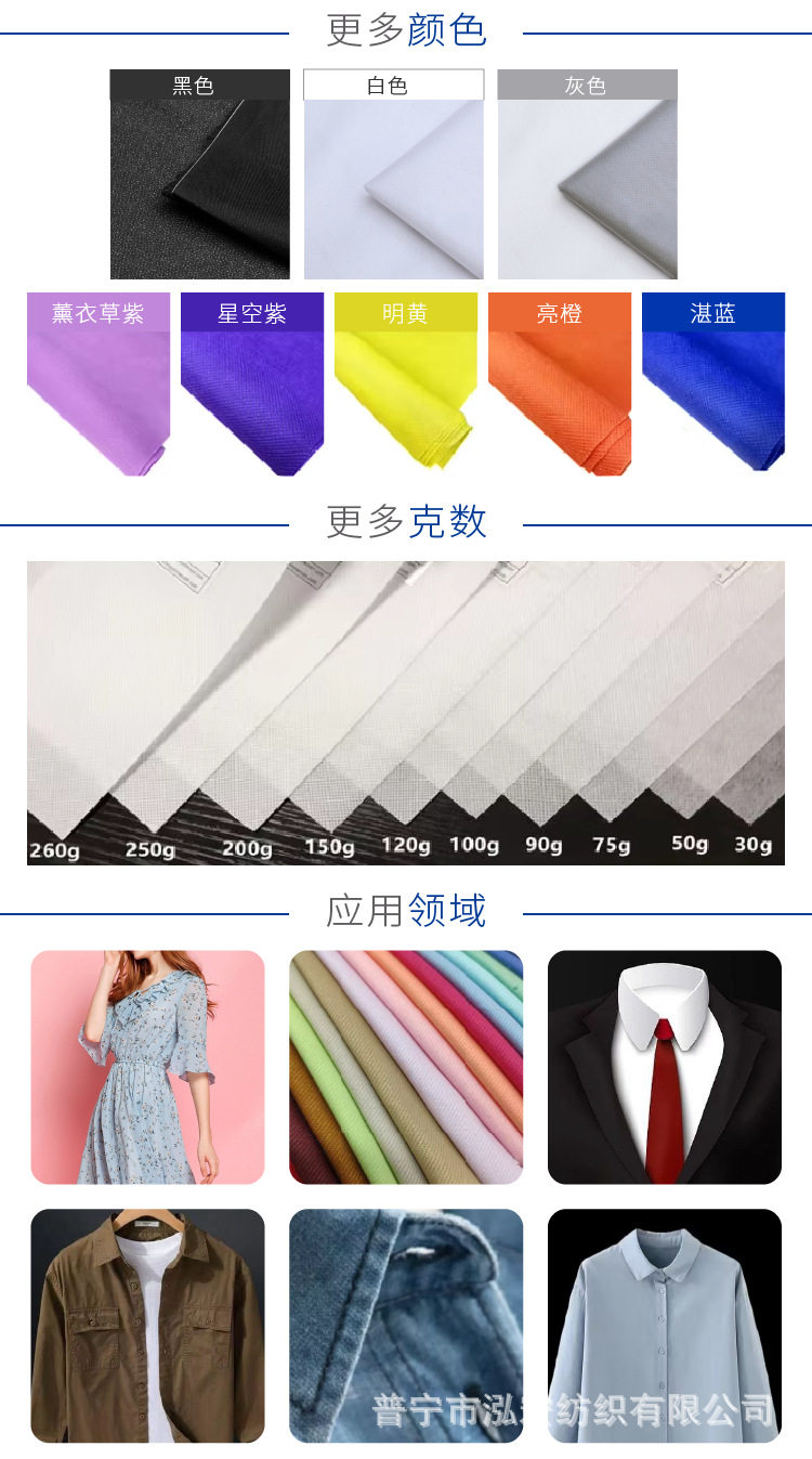 Xiangxing Manufacturer Wholesale 30D Colored Interlining Fabric, Garment Interlining, Adhesive Interlining, Colored Satin Ribbon for Shoes, Hats, and Clothing