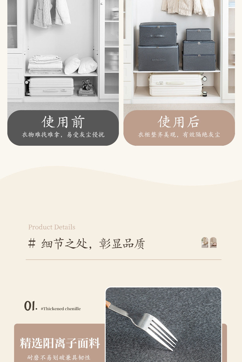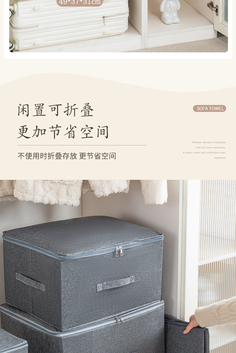 Large-Capacity Dust-Proof Clothes Box with Lid, Home Wardrobe, Foldable Cationic Quilt Storage Box