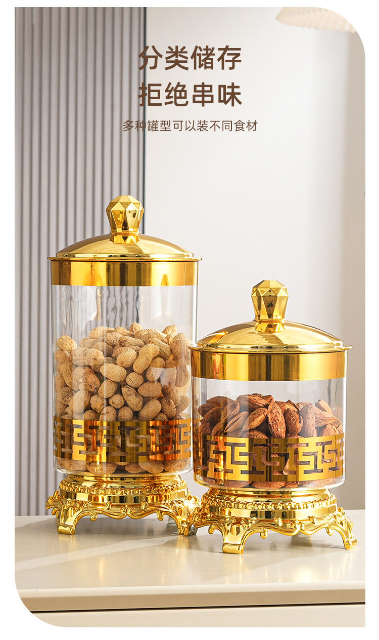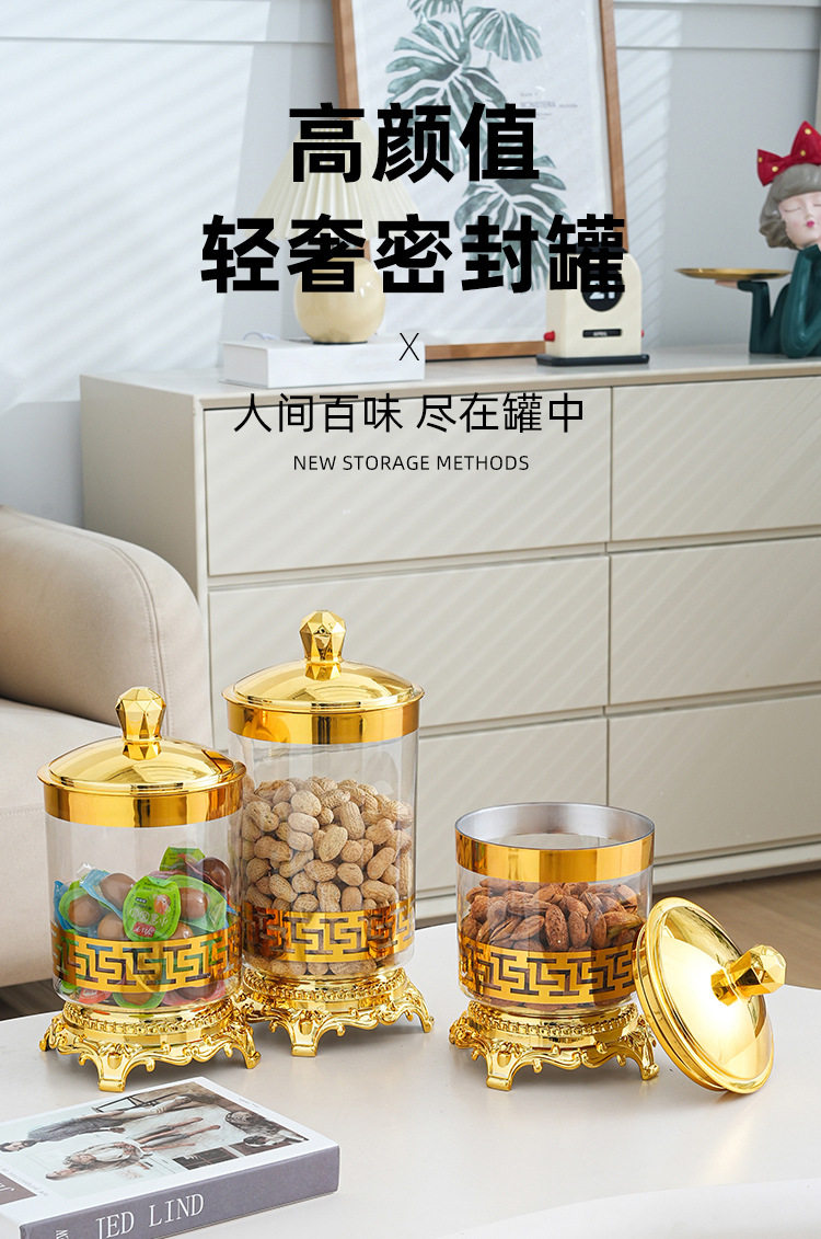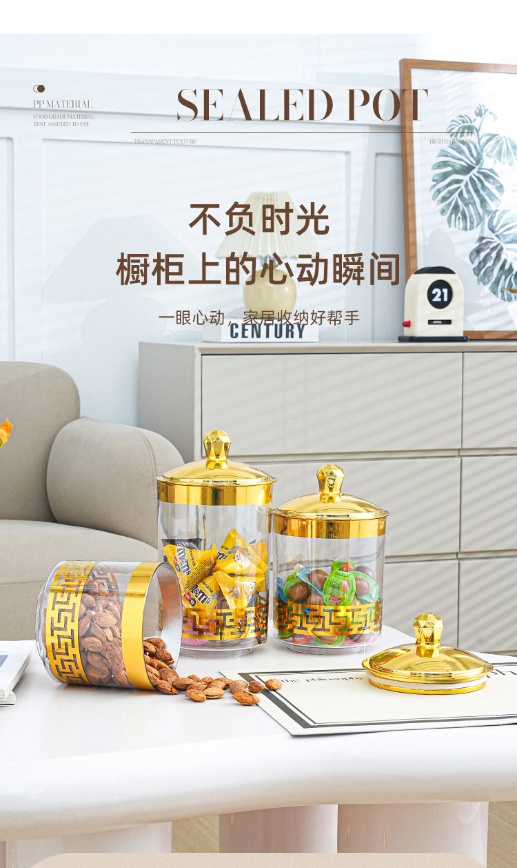 New Style Sealed Small Jar with Lid Transparent Phnom Penh Gold Bottom Round Storage Jar Nut Dried Fruit Finishing Small Box