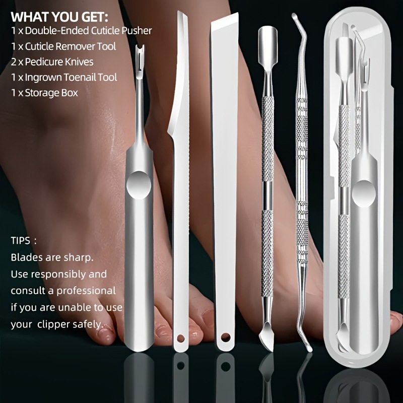 Cross-border hot-selling stainless steel pedicure knife suit dead leather fork double head nail picker foot shaving scraper 5-piece boxed