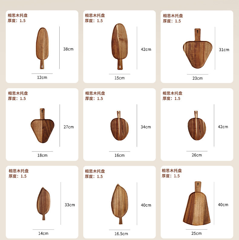 | Color | Acacia wood tray [38*12*1.5cm],Acacia wood tray [42*15*1.5cm],Acacia wood tray [31*23*1.5cm],Acacia wood tray [27*18*1.5cm],Acacia wood tray [34*16*1.5cm],Acacia wood tray [42*26*1.5cm],Acacia wood tray [33*14*1.5cm],Acacia wood tray [40*16*1.5cm],Acacia wood tray [40*25*1.5cm] |