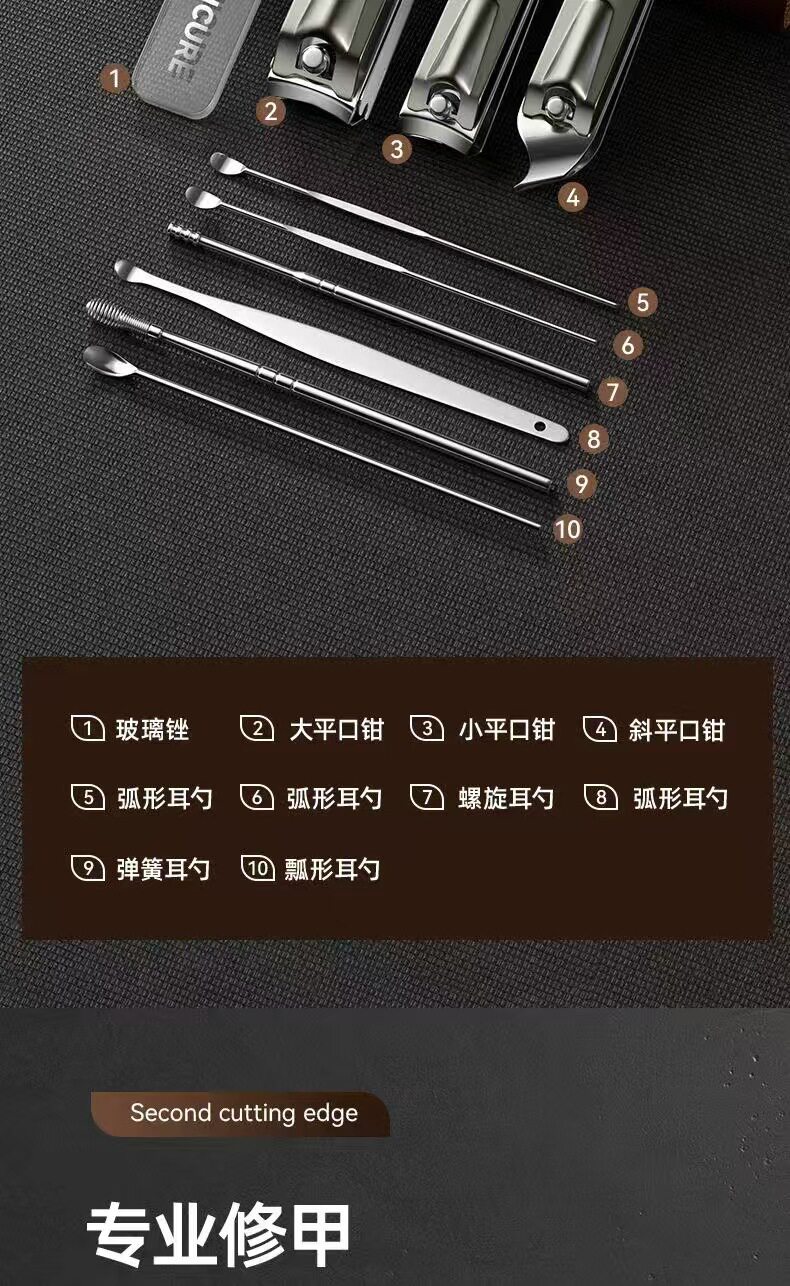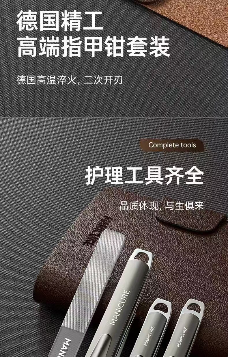 New German nail clippers 10-piece home splash-proof nail clippers suit high-grade leather case manicure pedicure tools