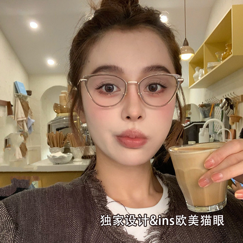 Ultra-light cat's eye brown glasses myopia degree can be matched with female makeup artifact retro square round face suitable for eyes frame