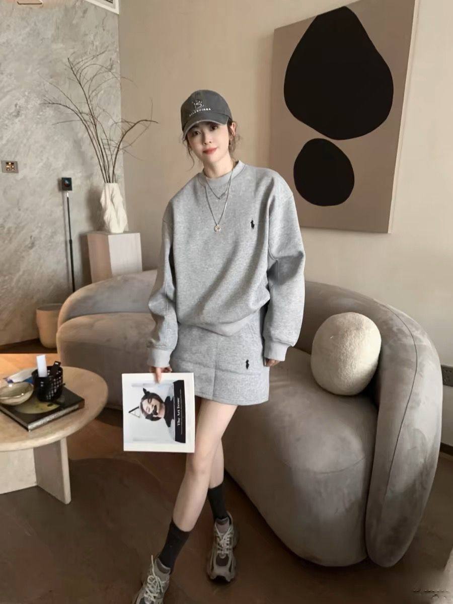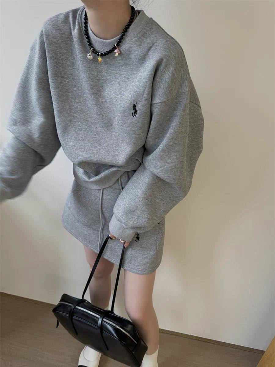 Pony Label Casual suit Women's Spring Autumn and Winter New Sweater Skirt Sports Style Slimming Age-reducing Two-piece Set