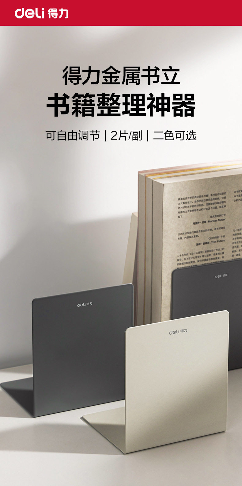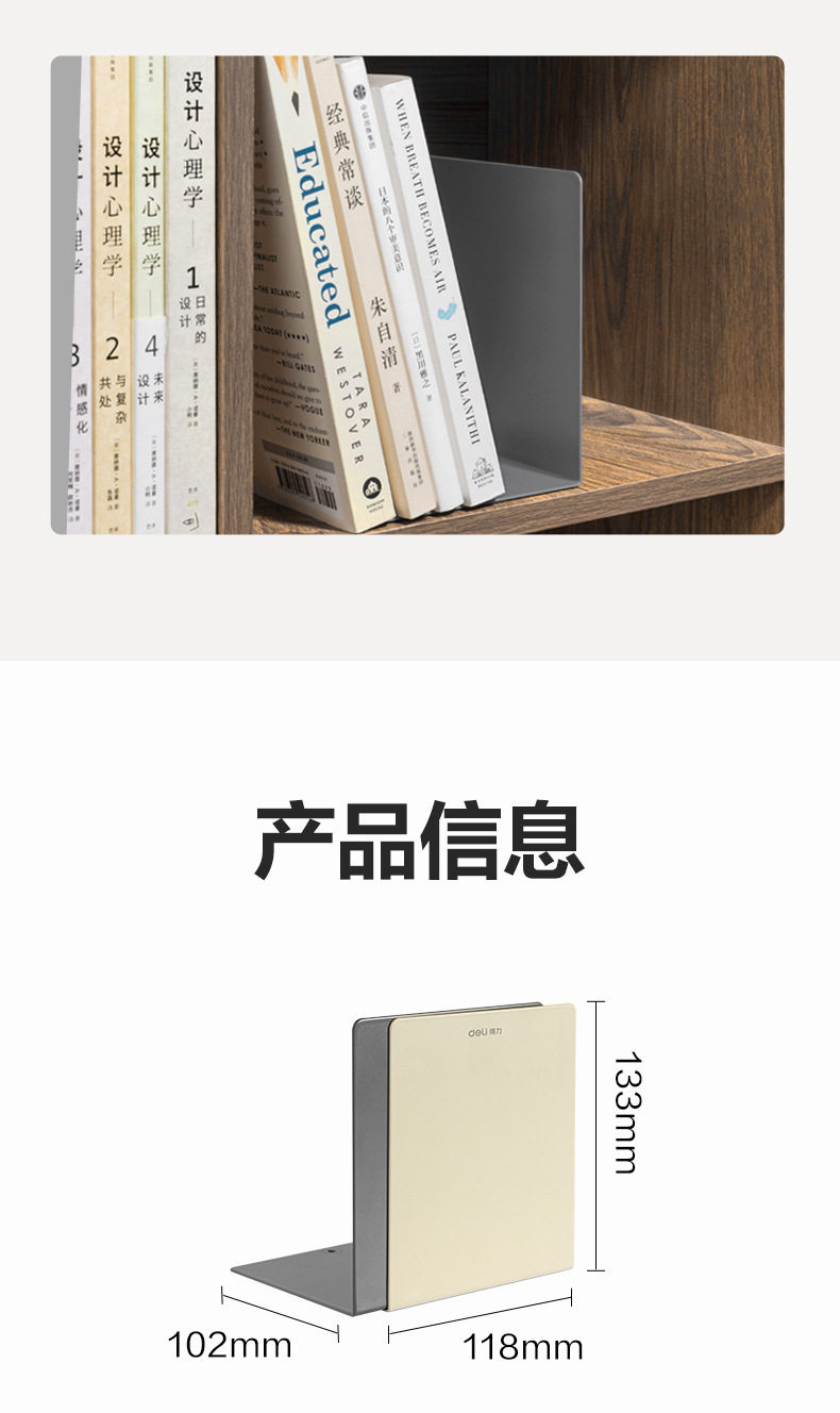 Deli Book Stand Metal Classified Booklet Reading Bookend Bookshelf Desk Student Library Bookend Iron Bookend Stationery