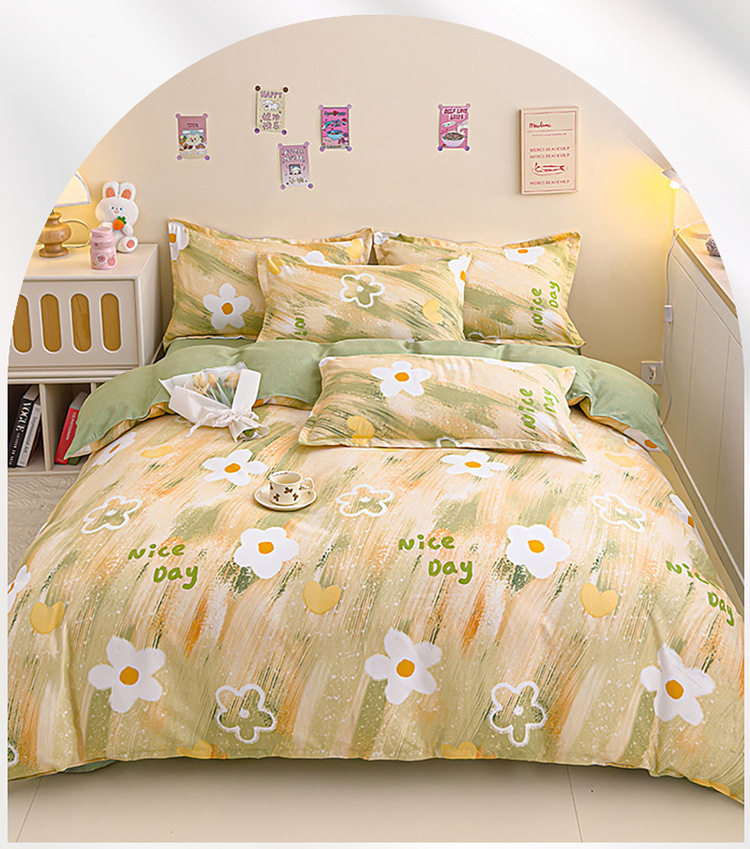 Washed Cotton Four-piece Set Bedding Thickened Twill Scrub Quilt Cover Bed Sheet Student Dormitory Three-piece Set Bedclothes