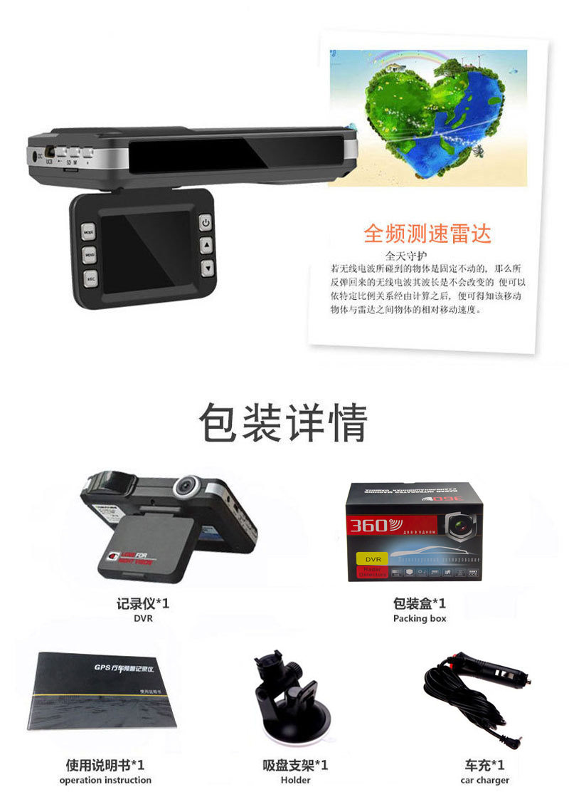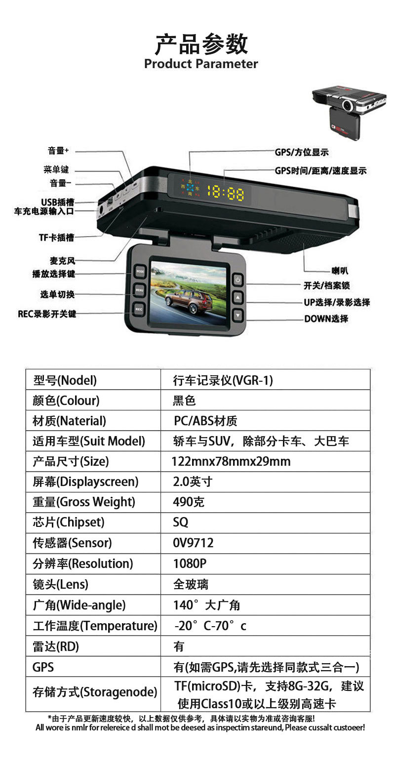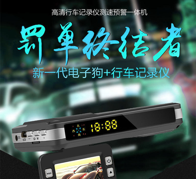Cross-Border Vg1V10 Driving Recorder Radar Two-In-One Electronic Dog Car Speedometer Radar Warning Detector