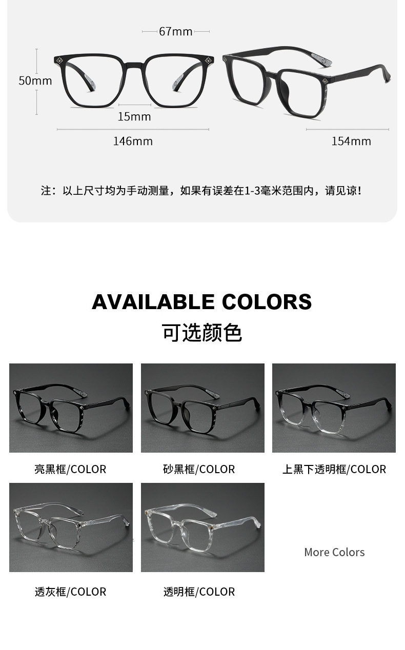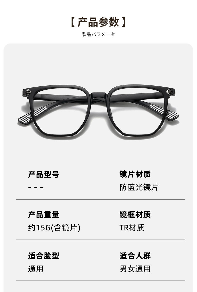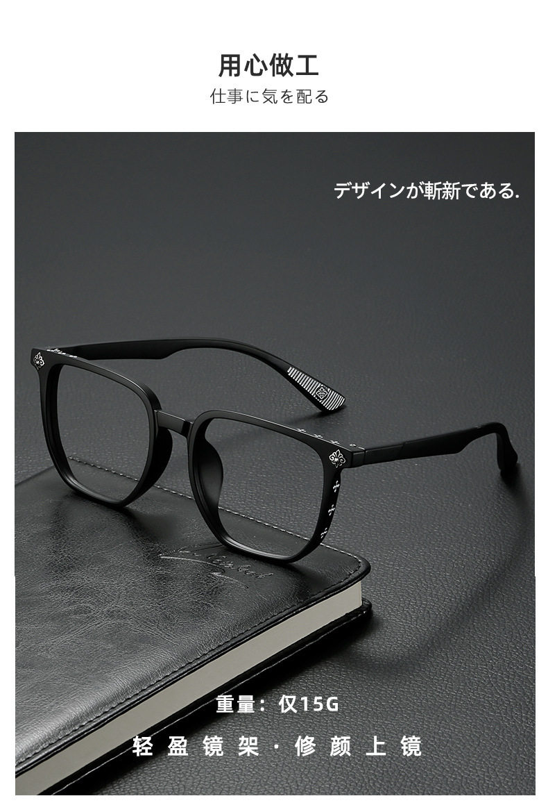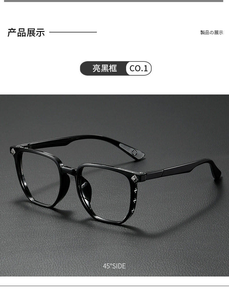 New temperament black frame anti-blue light glasses large frame face small plain frame women's flat mirror men's fashion wholesale generation