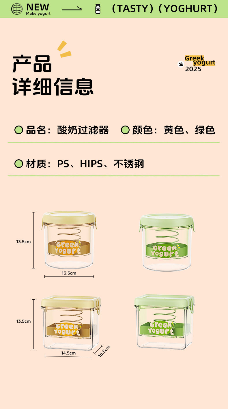 | Specifications | Round yogurt filter [yellow]],Round yogurt filter [green]],Rectangular yogurt filter [yellow]],Rectangular yogurt filter [green]],Round yogurt filter [yellow filter cloth 30*30/1]],Round yogurt filter [green filter cloth 30*30/1]],Rectangular yogurt filter [yellow filter cloth 30*30/1]],Rectangular yogurt filter [green filter cloth 30*30/1]] |