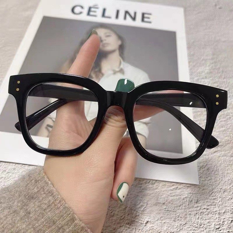 Retro Square Plain Glasses Women's Korean-style Fashionable Plain Glasses Round Face Plain Glasses All-match Large Frame Black Glasses Frame