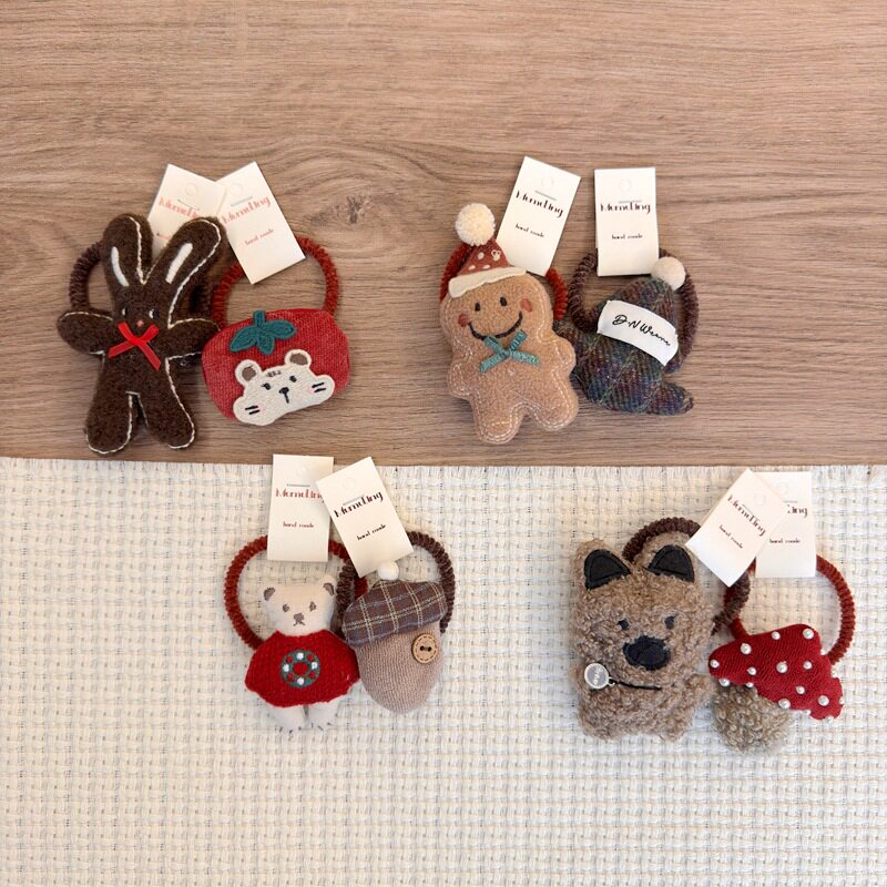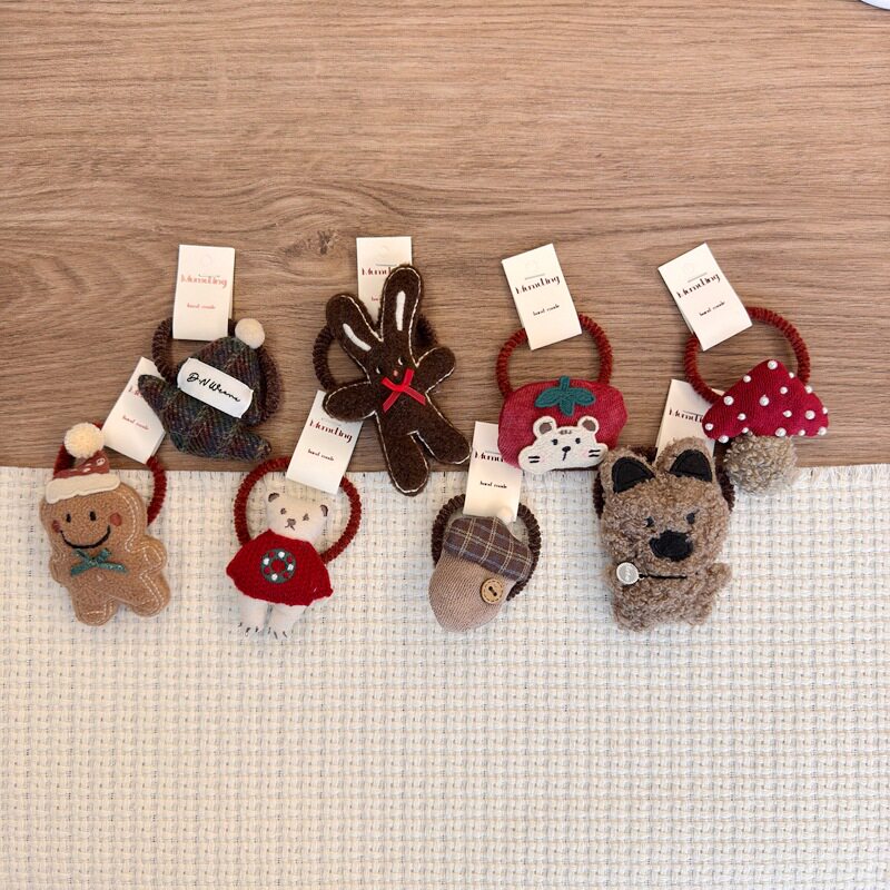 | Color | Red bear hair tie,Pancake man hair tie,Pearl mushroom,Christmas tree hair tie,Apple bear hair tie,Hazelnut hair tie,Brown rabbit hair tie,Coffee bear hair tie |
