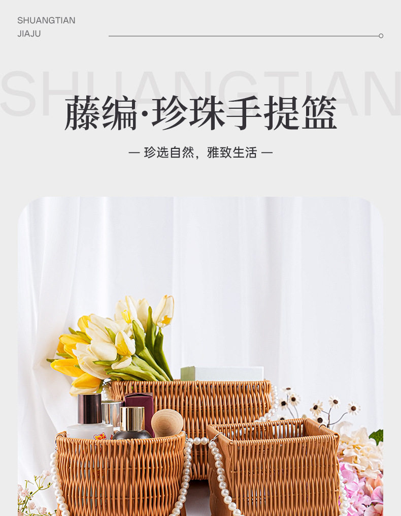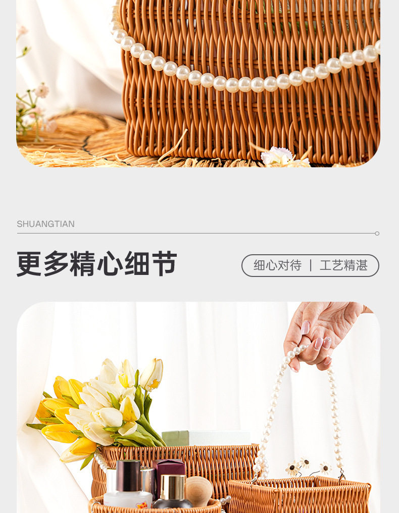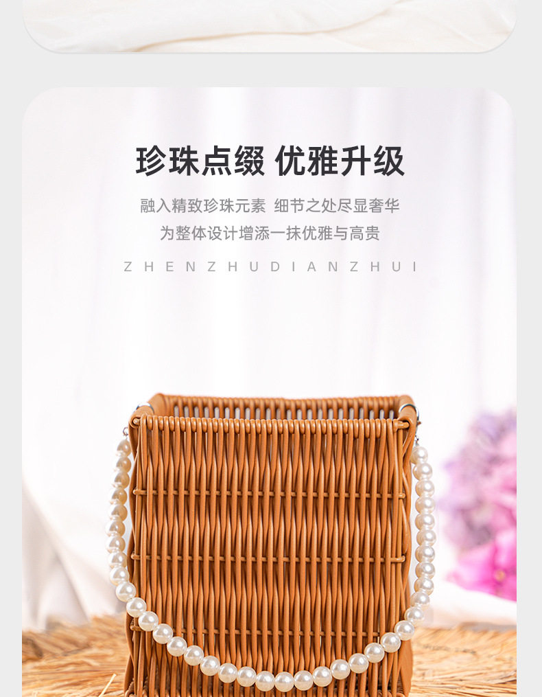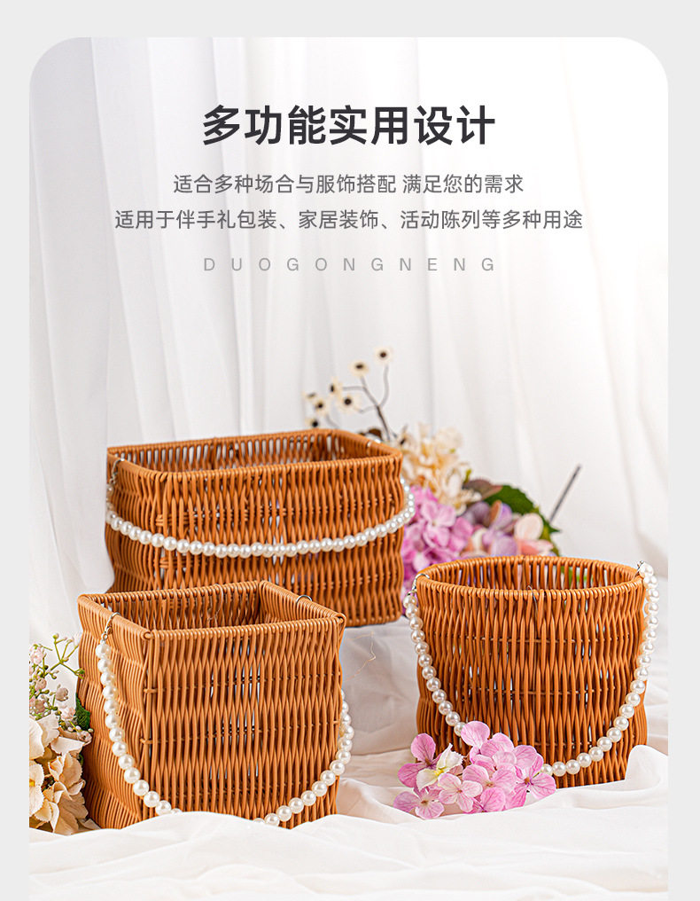 Pp Rattan Hand Basket Pearl Handle Bag Wedding Decoration Flower Basket Woven Gift Box Decorative Basket Storage Basket