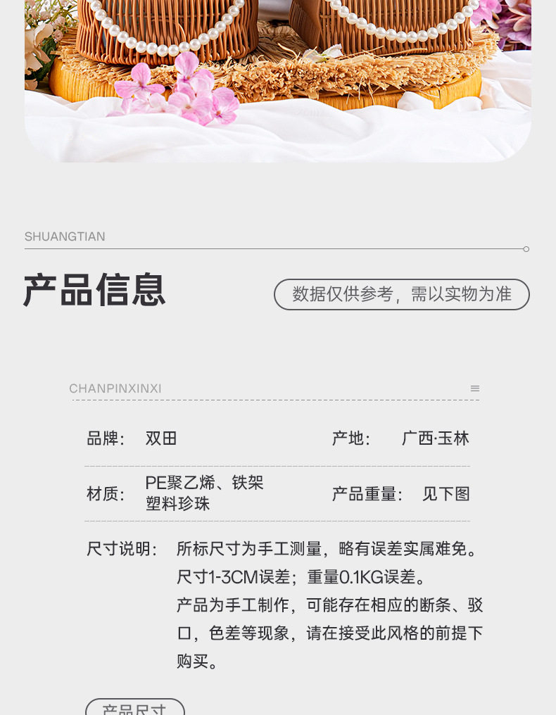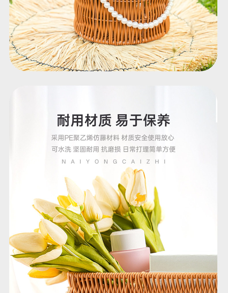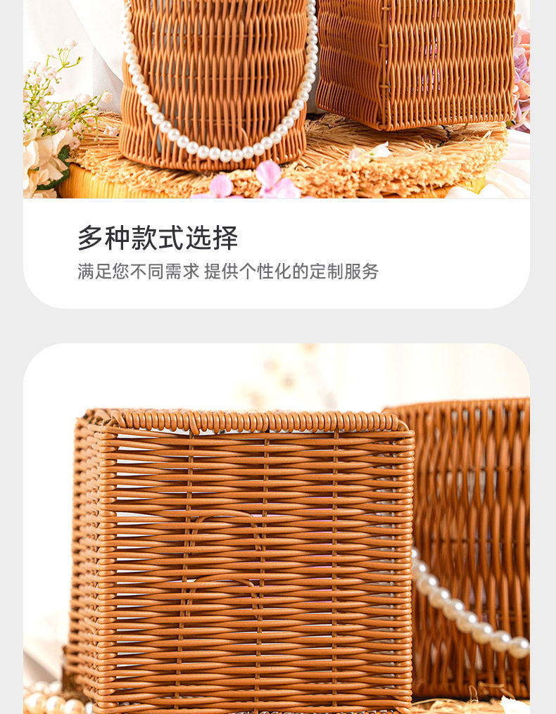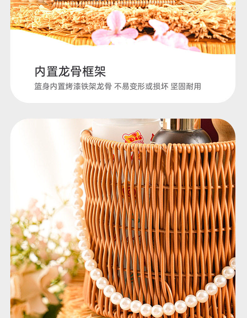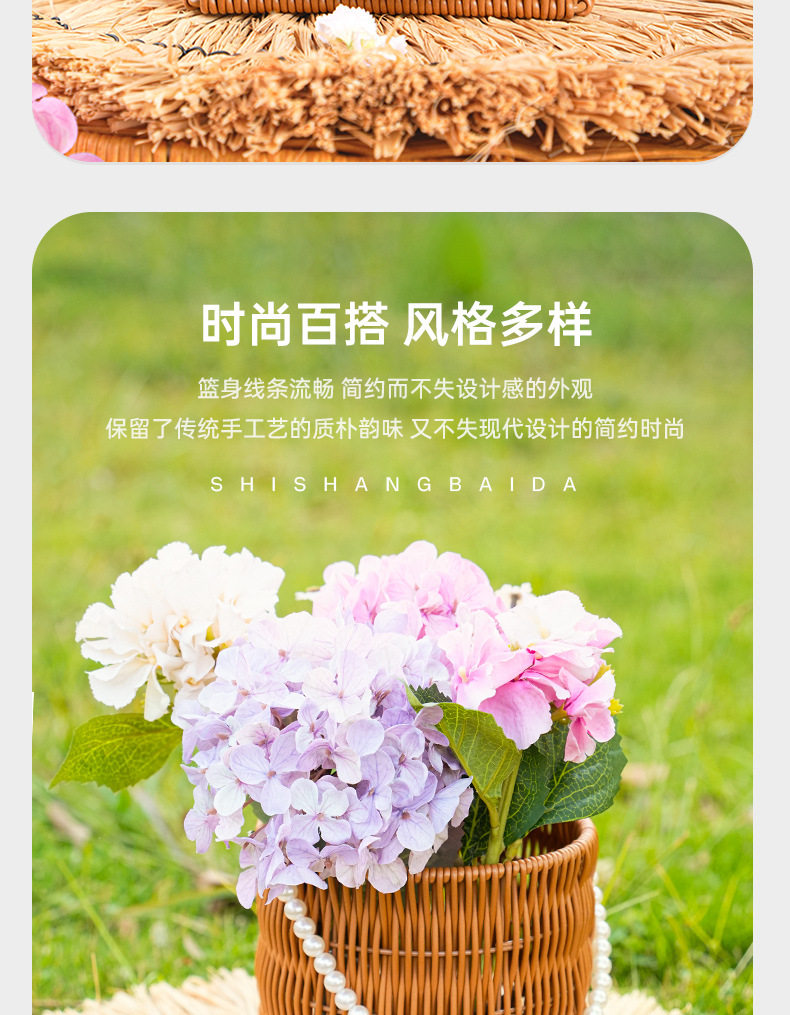 Pp Rattan Hand Basket Pearl Handle Bag Wedding Decoration Flower Basket Woven Gift Box Decorative Basket Storage Basket