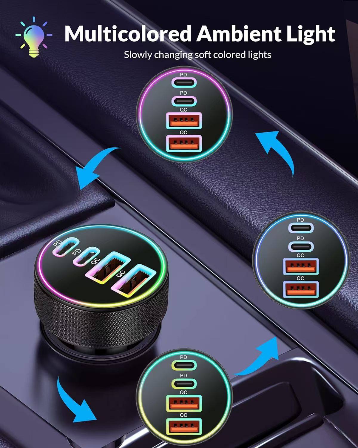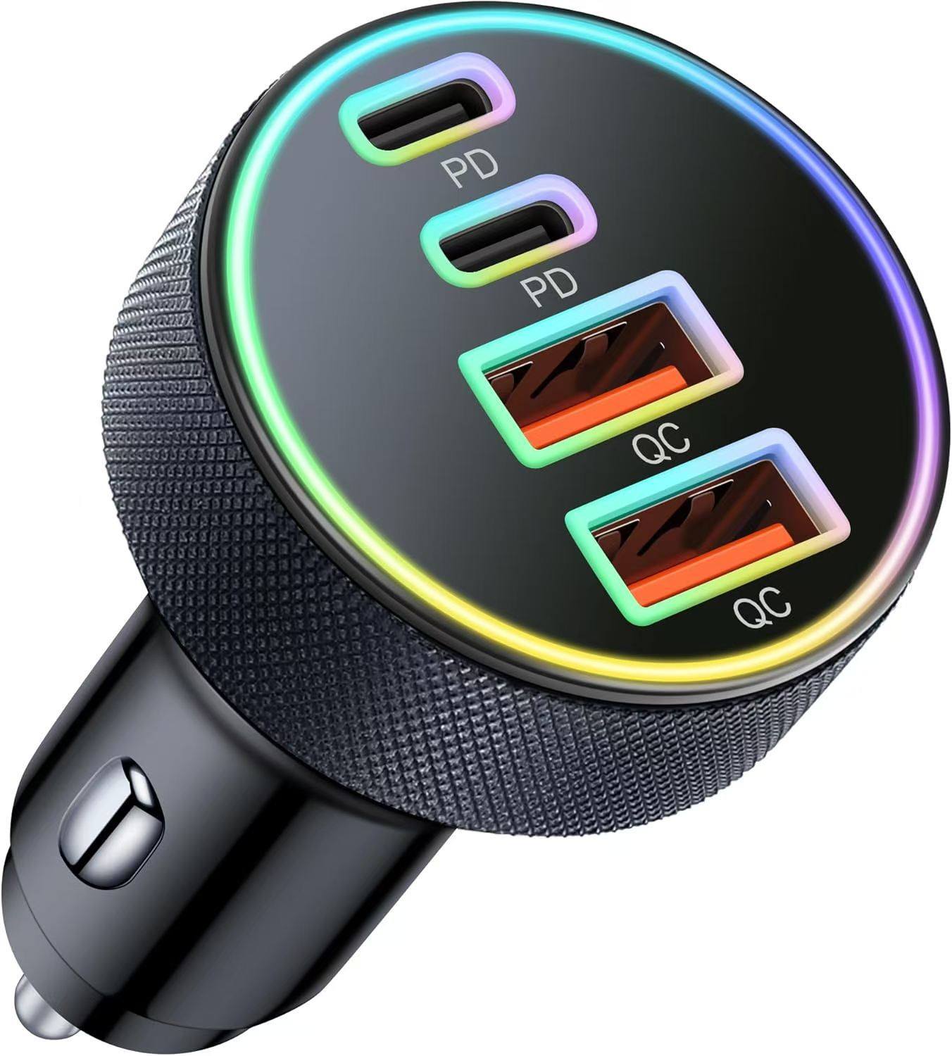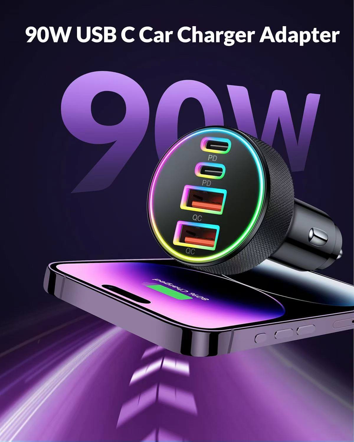 Cross-Border Hot-Selling Aluminum Alloy Car Charger One-To-Four Fast Charging Dual Qc3.0 Metal Car Charger High Power