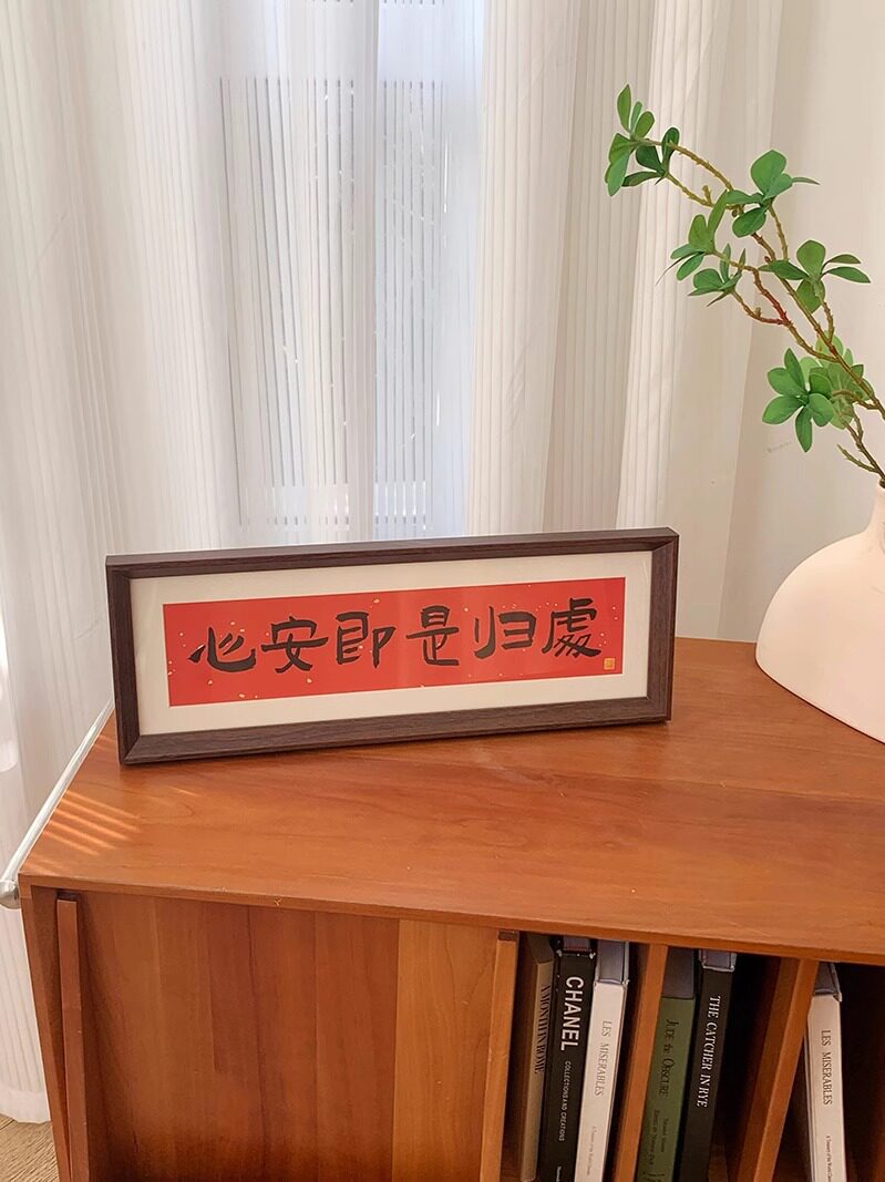 New Chinese-Style Calligraphy Horizontal Frame with Empty Text Frame for Mounting, Rectangular Tabletop Painting Frame, Wooden Frame