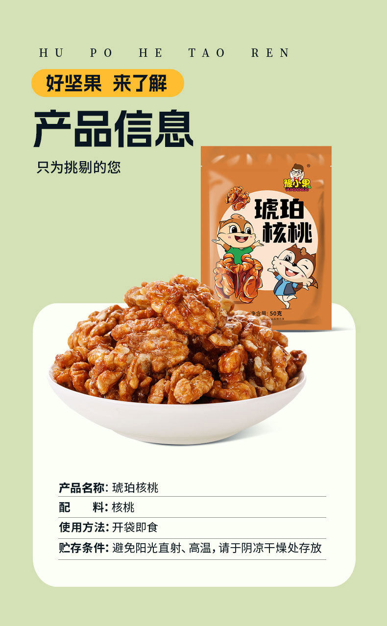 | Packaging specifications | Amber walnut kernels 50g |