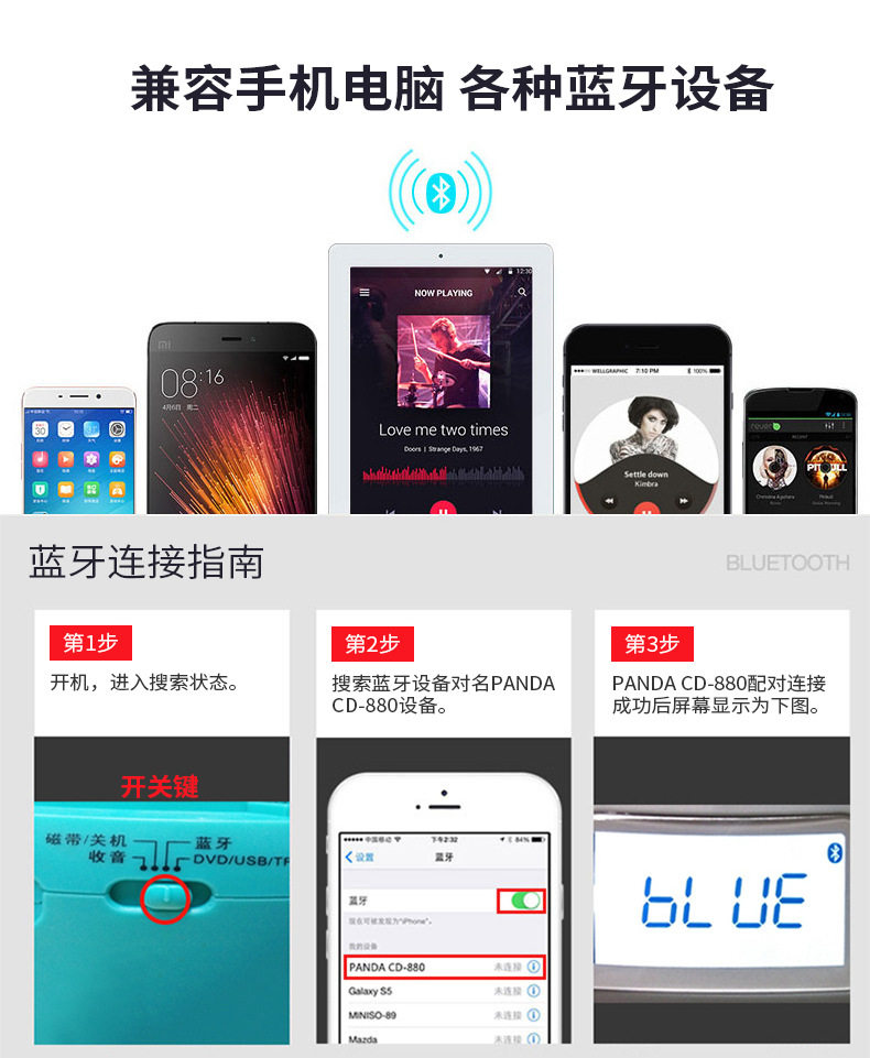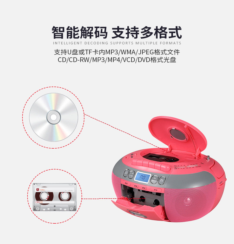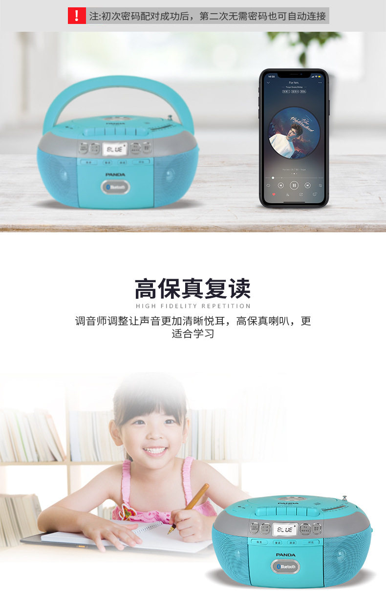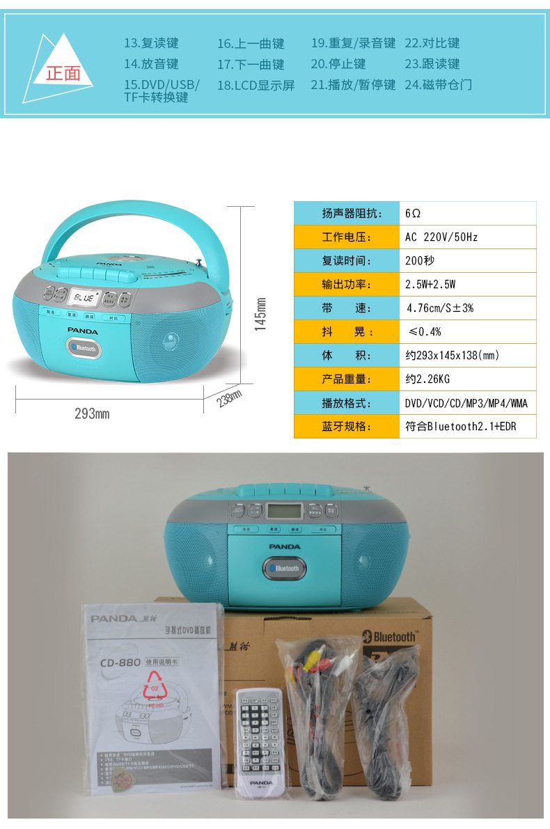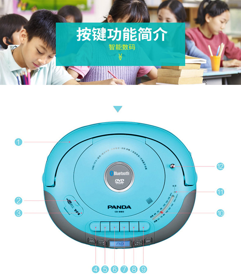 Customizable Panda Cd-880Cd/Dvd Tape All-In-One English Learning Recorder Bluetooth Player