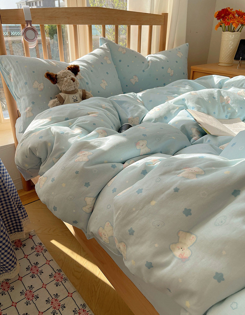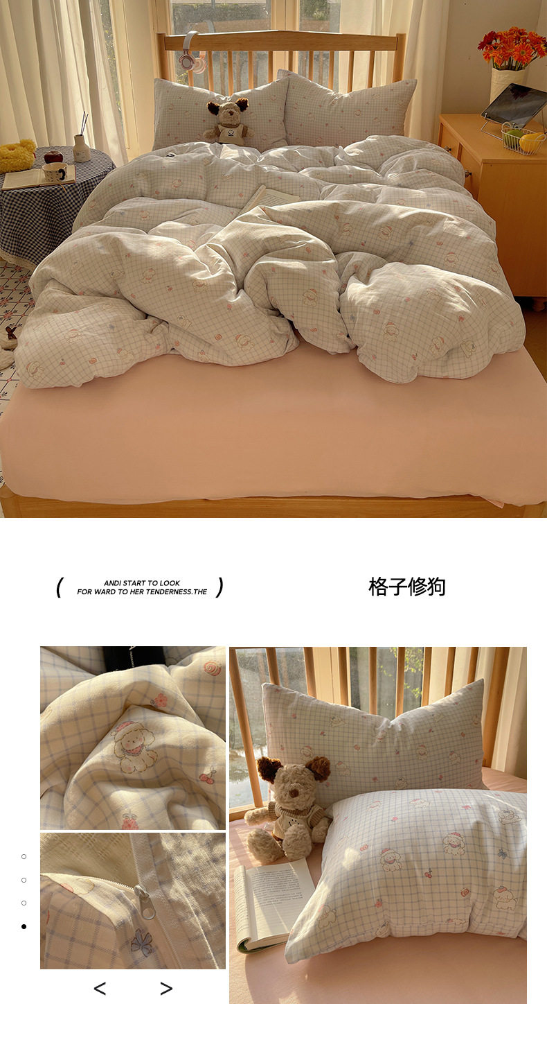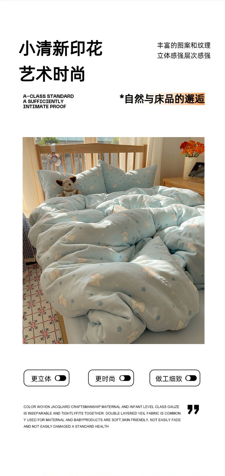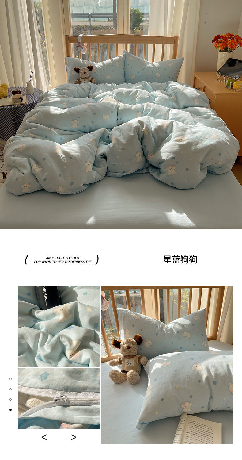 Small Fresh Girly Heart Cute Dog Double-Layer Gauze Quilt Cover Pure Cotton Type a 4-Piece Dormitory Three-Piece Set