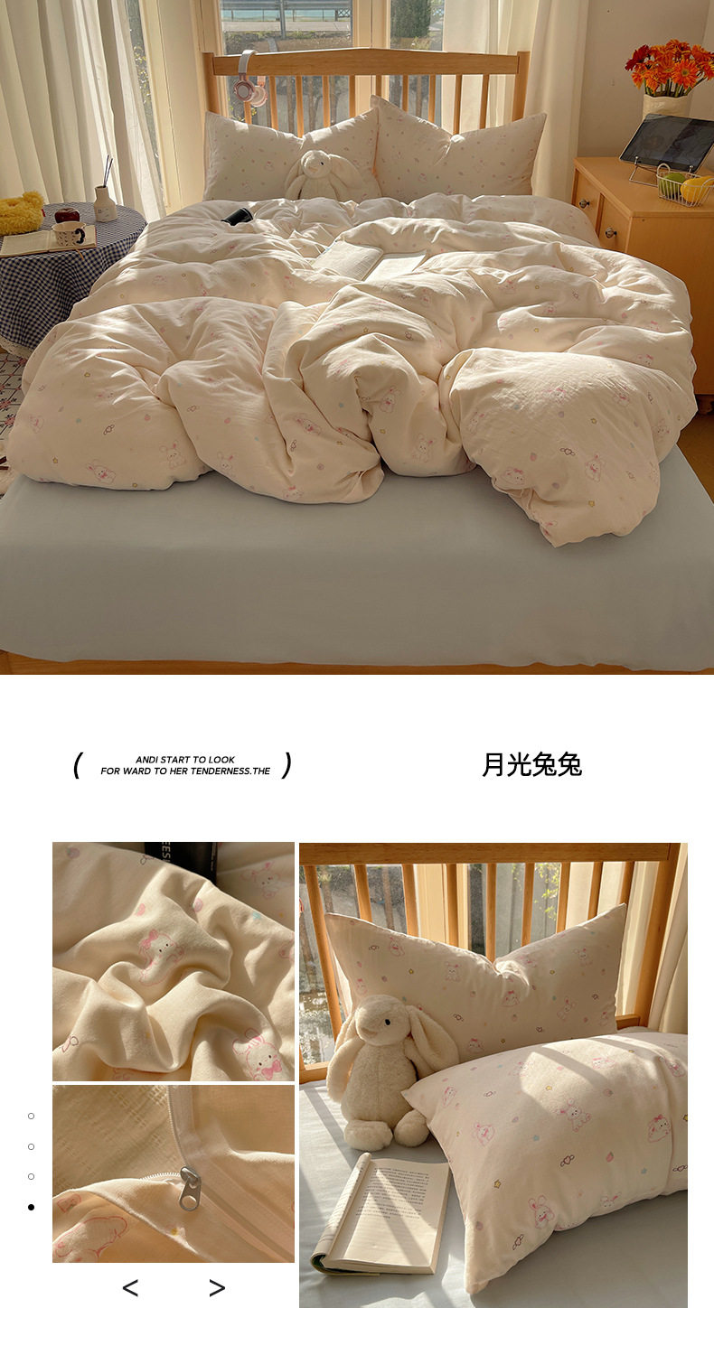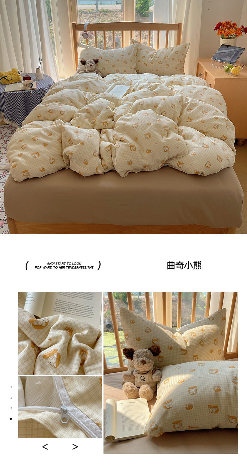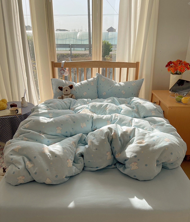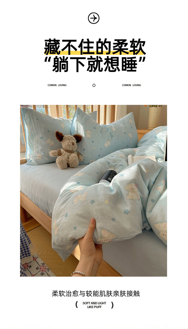 Small Fresh Girly Heart Cute Dog Double-Layer Gauze Quilt Cover Pure Cotton Type a 4-Piece Dormitory Three-Piece Set