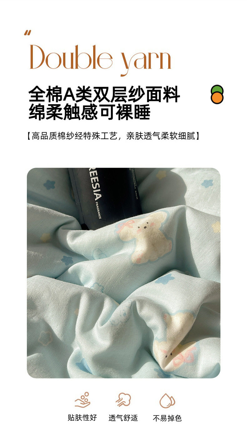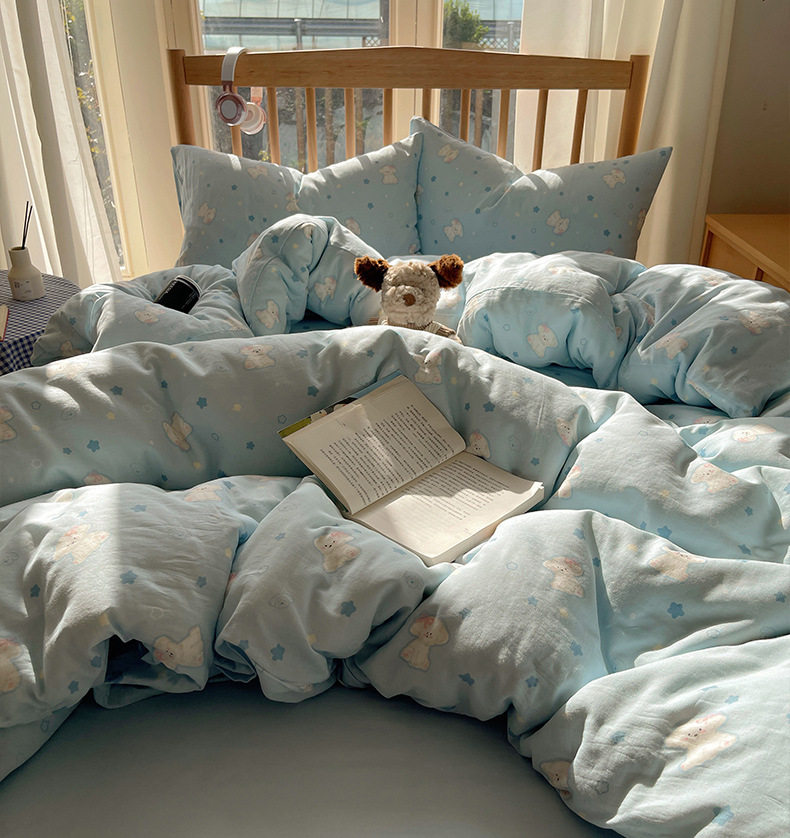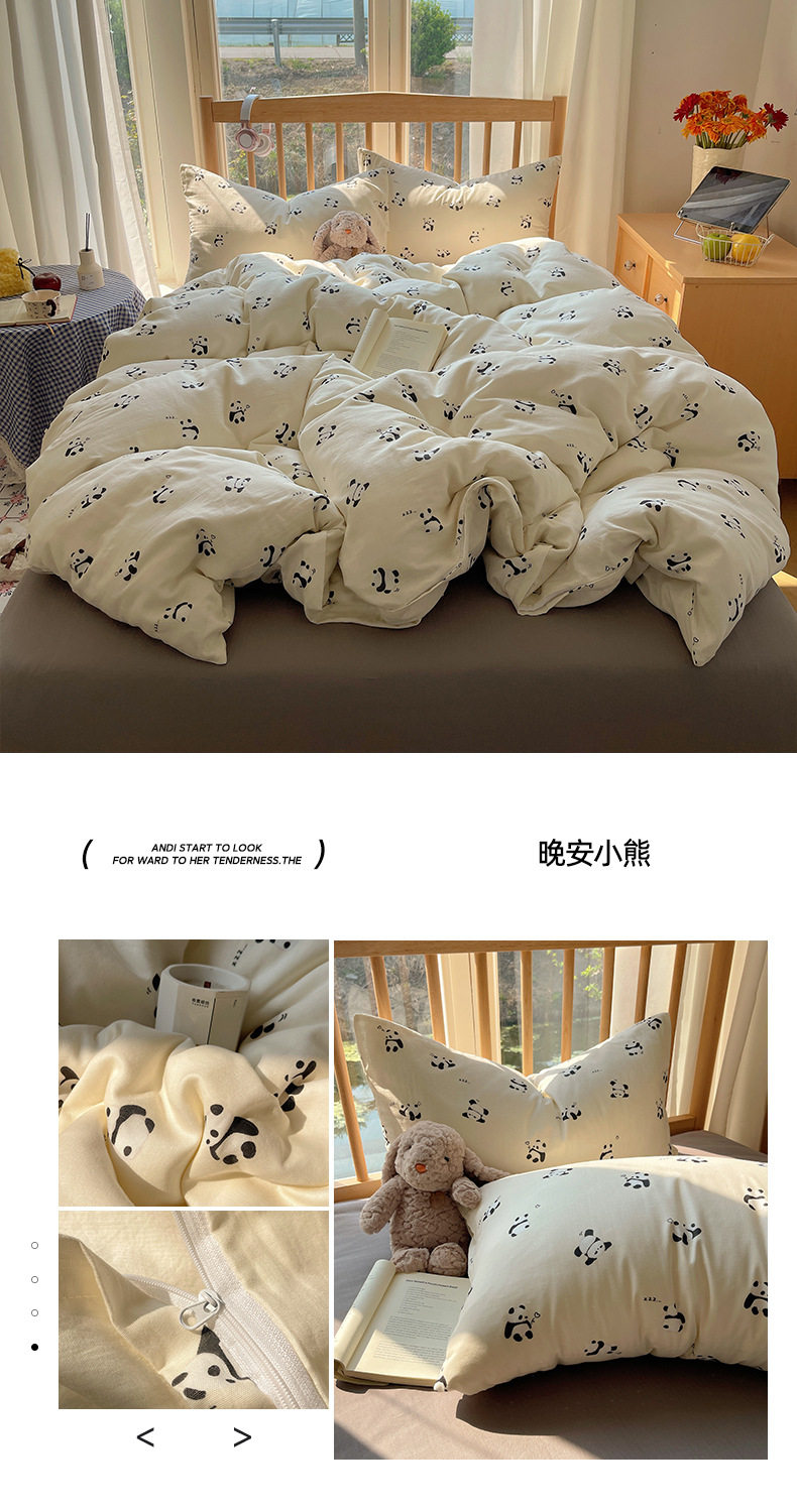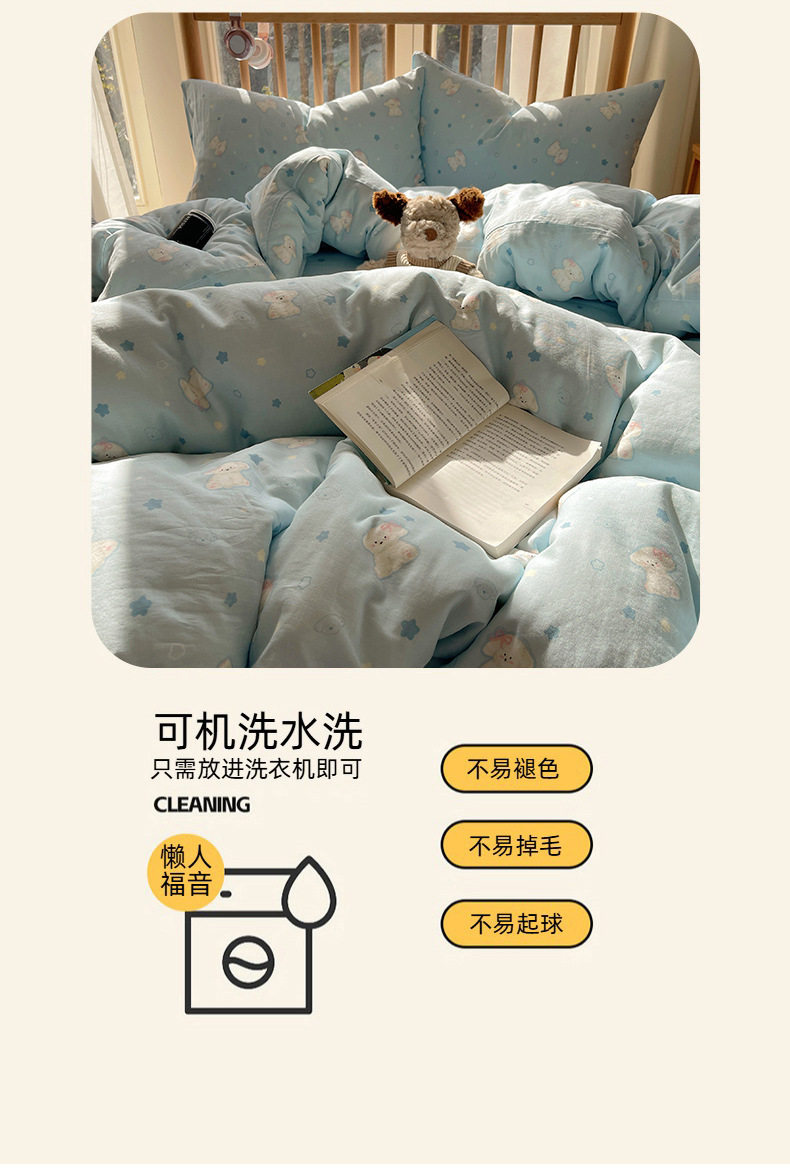 Small Fresh Girly Heart Cute Dog Double-Layer Gauze Quilt Cover Pure Cotton Type a 4-Piece Dormitory Three-Piece Set