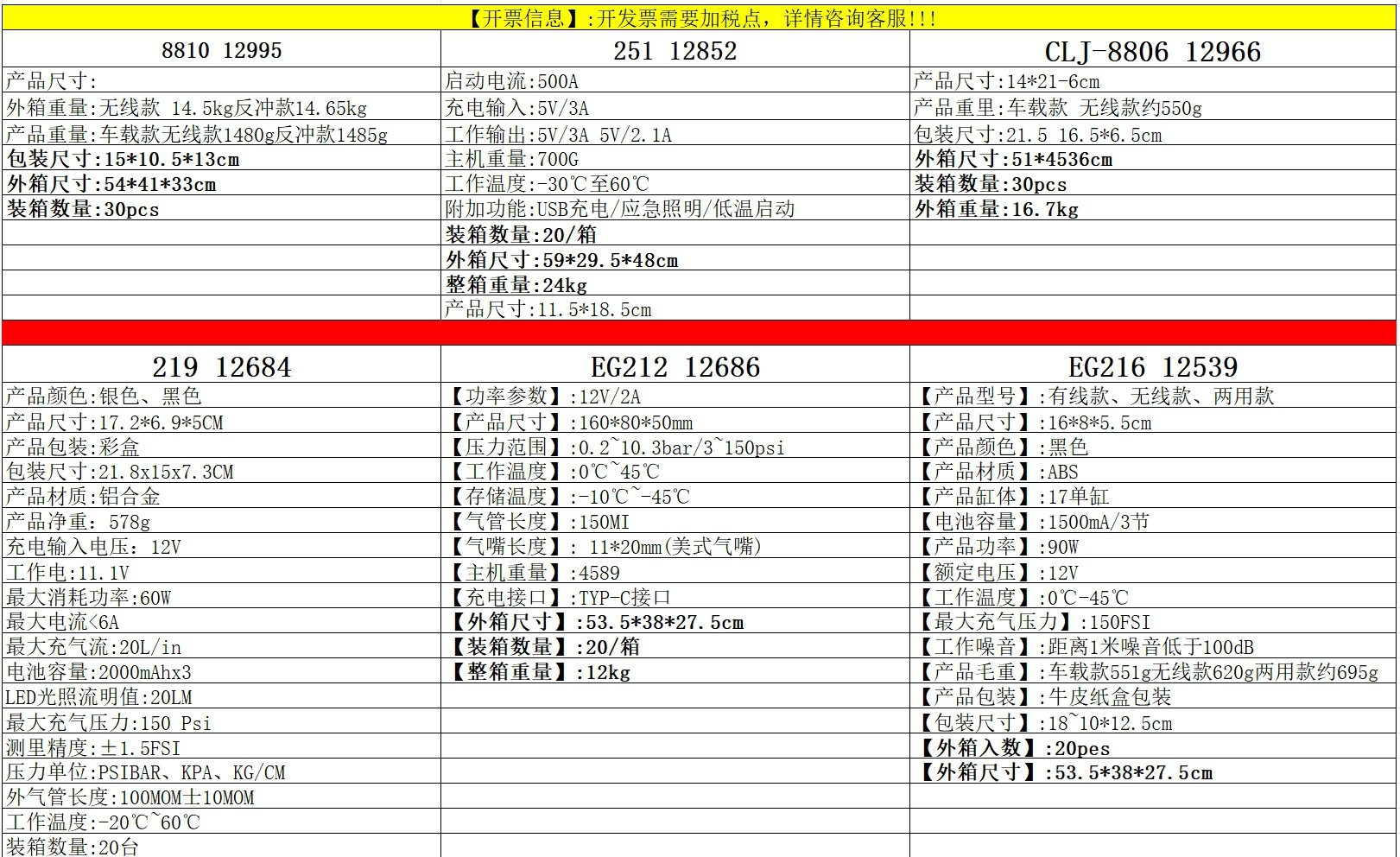 | Specifications | 8810 car models,8810 wireless models,8810 wireless model (can be used as charging treasure),EG216 car model (cigarette lighter to take electricity) (can be equipped with storage bag),EG216 wireless charging (can be equipped with storage bag),EG216 wireless with recoil (can be used as charging treasure) (can be equipped with storage bag),EG216 wireless dual-use models (can be equipped with storage bag),EG216 double digital display-wireless with recoil (can be used as charging treasure) (can be equipped with storage bag),EG216 double digital display-wireless dual-use models (can be equipped with storage bag),EG216 double digital display-three-use model (can be used as charging treasure) (can be equipped with storage bag),CLJ-8806 car model,CLJ-8806 wireless models,EG212 car model (cigarette lighter to take power),EG212 Wireless,EG212 wireless dual-use models,EG212 wireless dual-use model with recoil (can be used as charging treasure),251 6000mAh electric start inflatable all-in-one machine,251 7200mAh jump start inflatable all-in-one machine,251 8000mAh jump start inflatable all-in-one machine,219 car wired-brilliant silver,219 wireless dual-use-brilliant silver,Cx-818 cx-818 dual digital display three-purpose model |