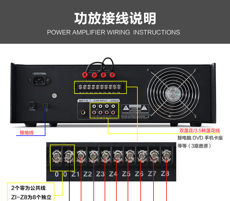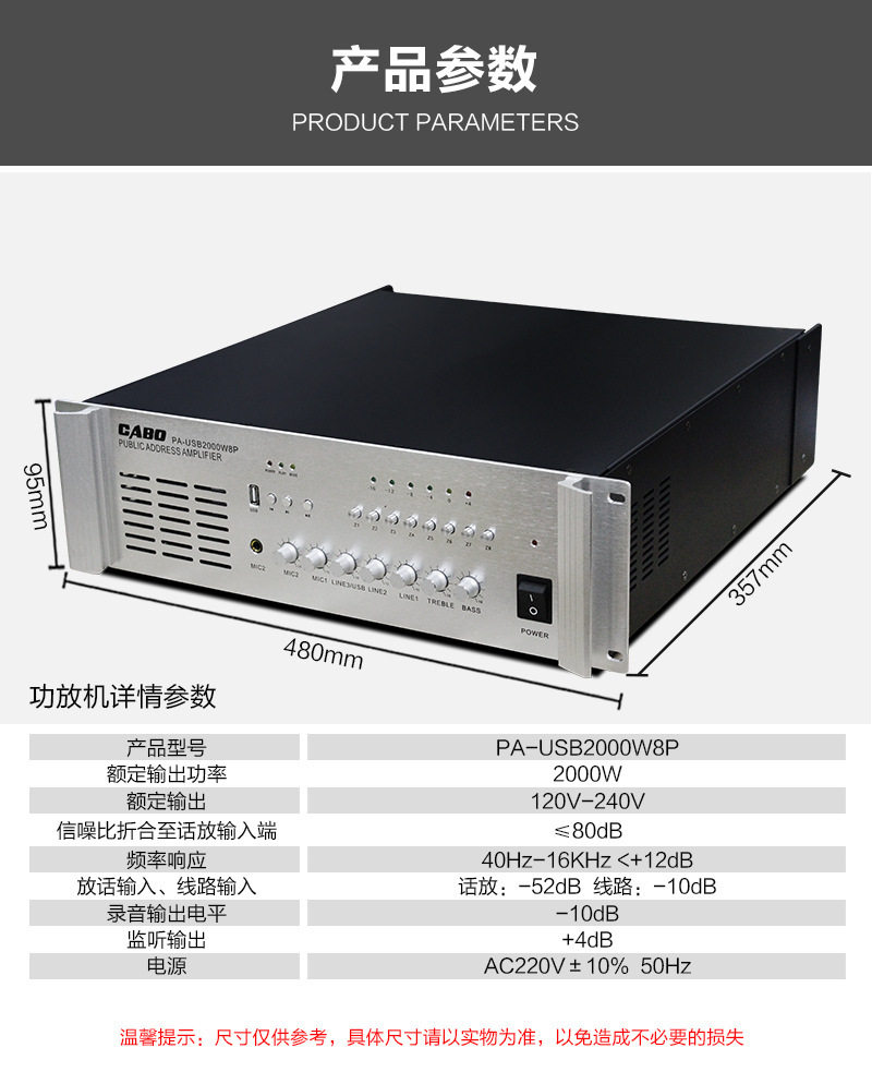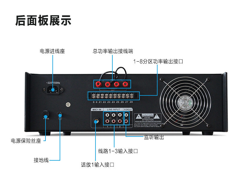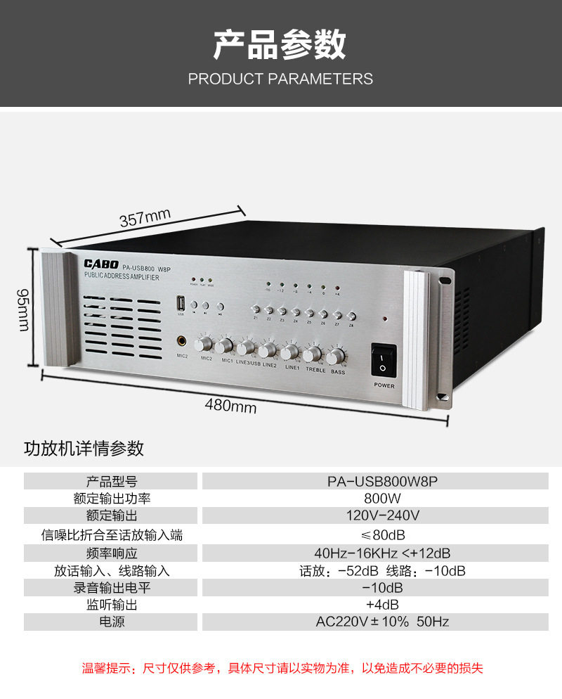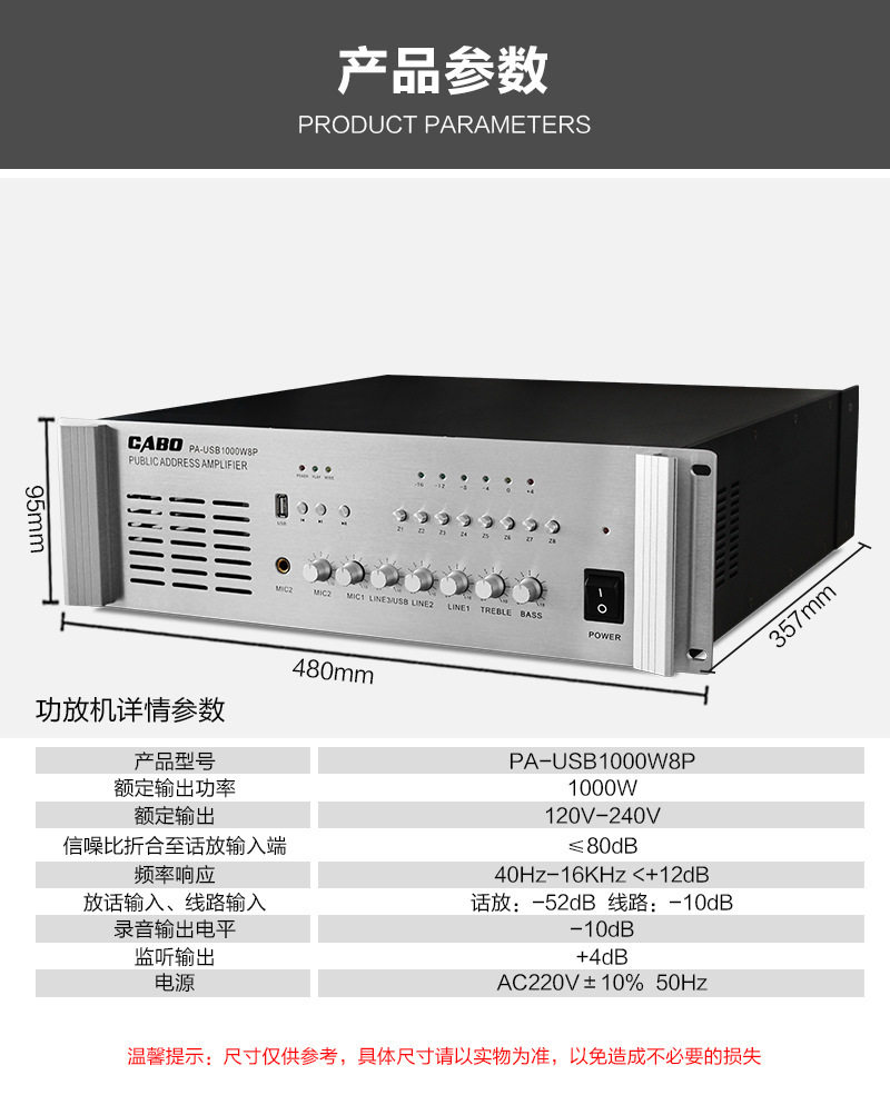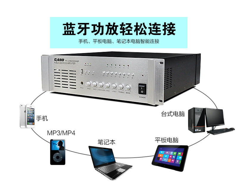 Cabo/Jibao High-Power Campus Public Broadcast Background Music Partition Amplifier with Bluetooth USB