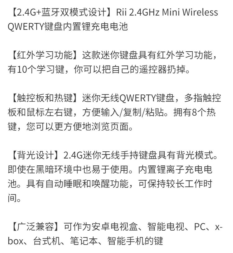 Rii K06 Dual Mode 2.4G Bluetooth Backlit Wireless Keyboard Air Mouse Set Top Box Remote Control Phone Keyboard