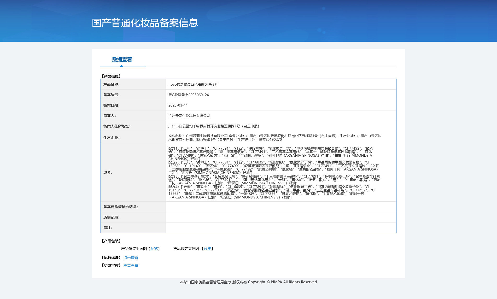 | Extra cosmetics registration certificate number | Guangdong g makeup net preparation2023060124 |