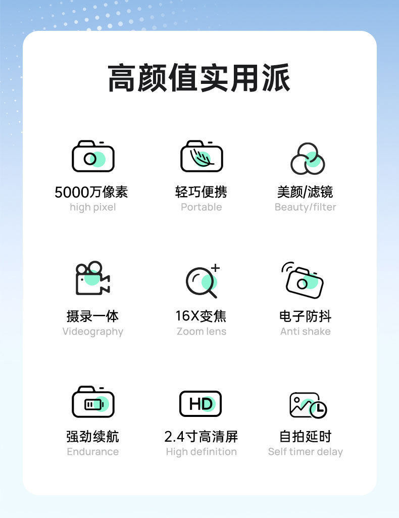 Cross-border ccd HD 4K pixel digital camera student entry mini card machine home shooting camera