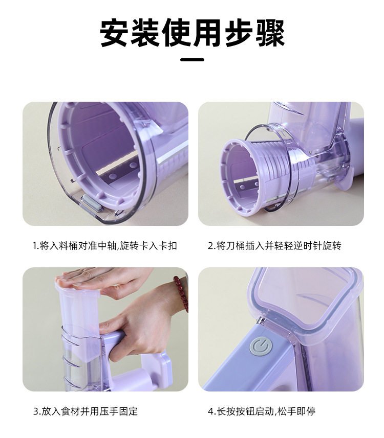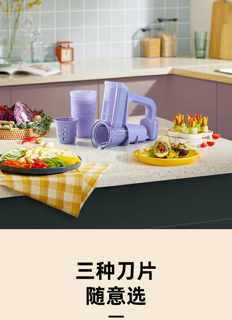 | Color | Handheld vegetable cutter [dream purple],Handheld vegetable cutter [elegant (white + gray)],Handheld vegetable cutter [supreme black],Vegetable cutter with base [elegant (white + gray),Vegetable cutter with base [dream purple],Vegetable cutter with base [supreme black],Handheld vegetable cutter with four knives [purple],Handheld vegetable cutter with four knives [black],Handheld vegetable cutter with four knives [white + gray],Four knives for vegetable cutter with base [purple],Four knives for vegetable cutter with base [black],Four knives for vegetable cutter with base [white + gray] |