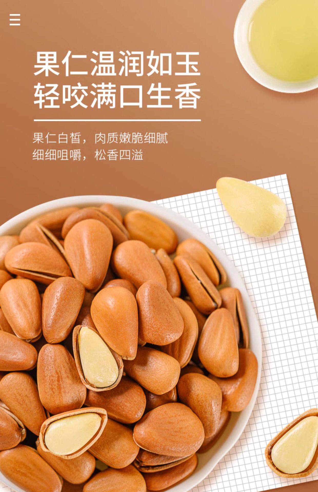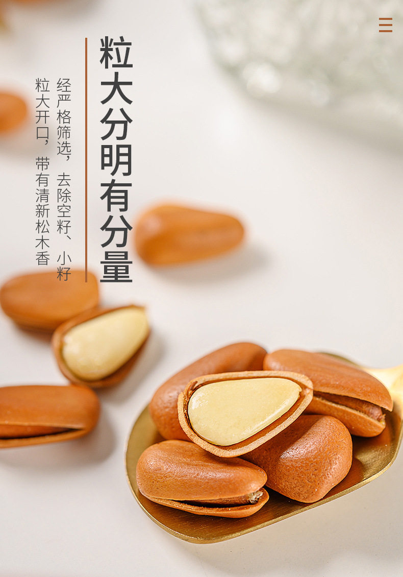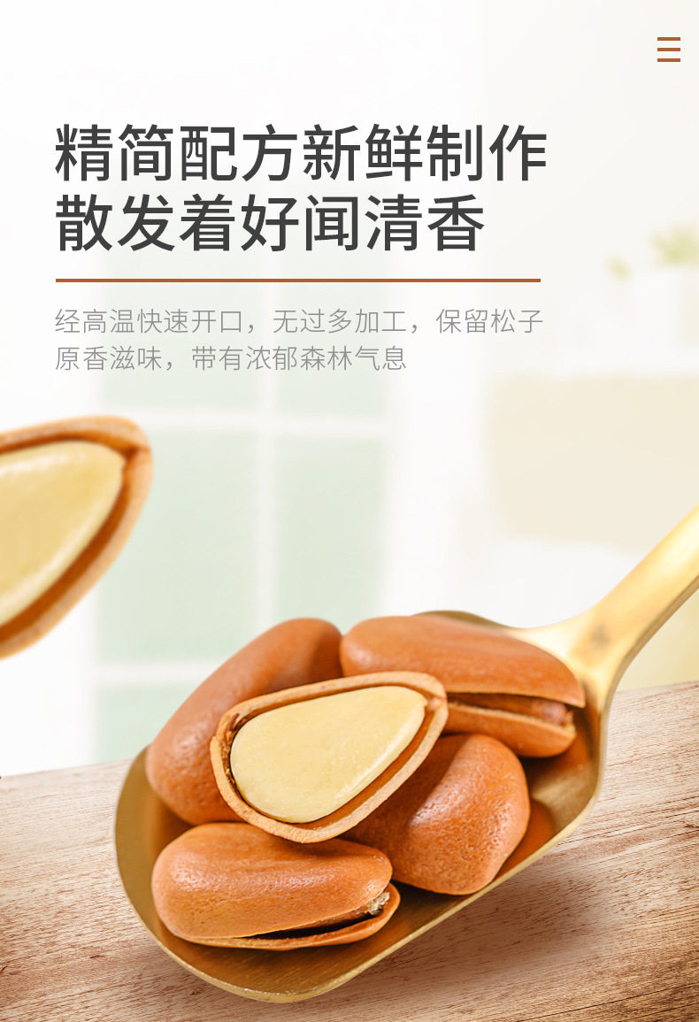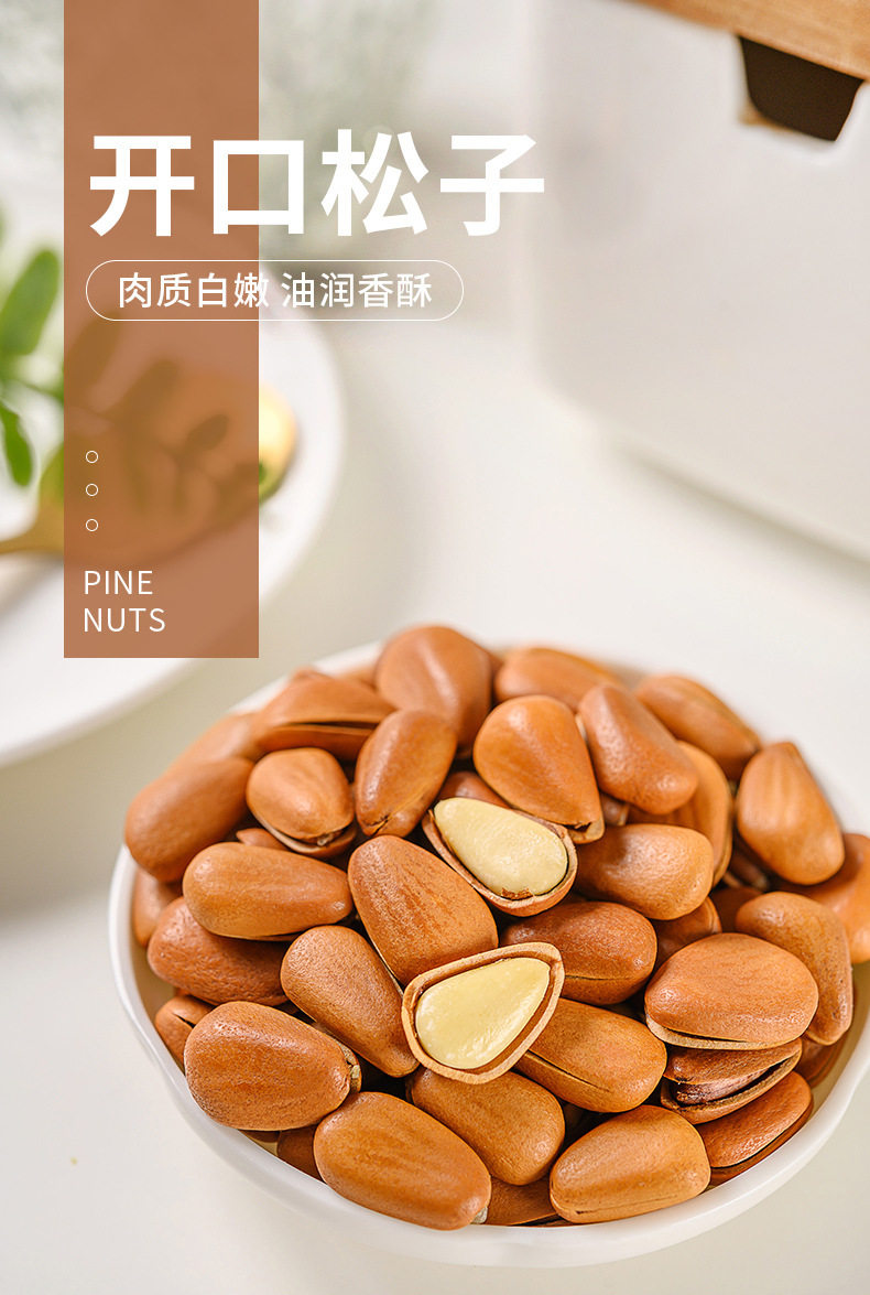 | Packaging specifications | Open pine nuts 250g*1 can,Open pine nuts 250g*2 cans,Open pine nuts 250g*3 cans,Open pine nuts 250g*4 cans,Open pine nuts 250g*5 cans |