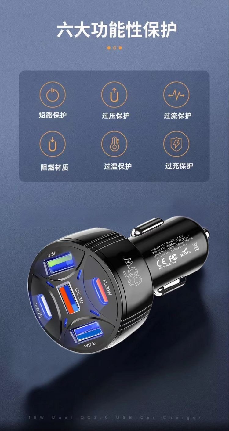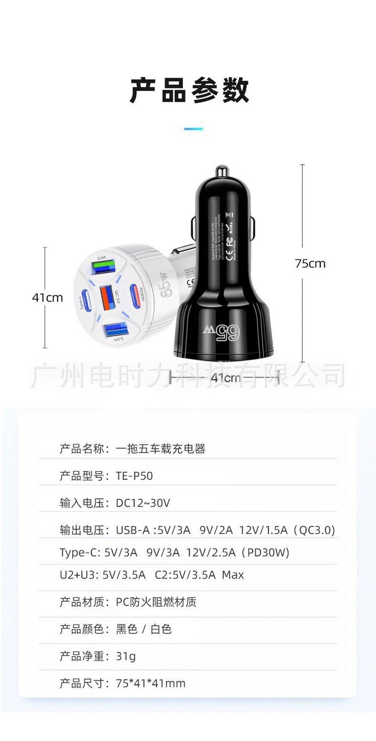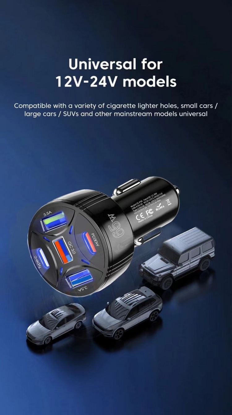 Cross-border new product PD30W for Apple 15 car charger mobile phone super fast charge multi-port one drag five car charge