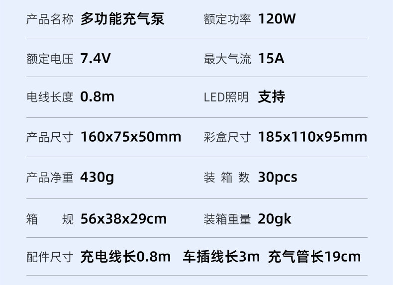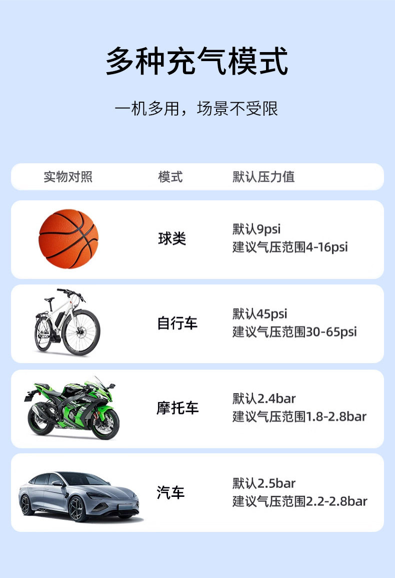 | Additional features | Lighting,Tire pressure gauge,Warning light,Usb charging |