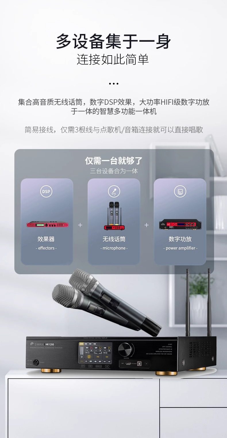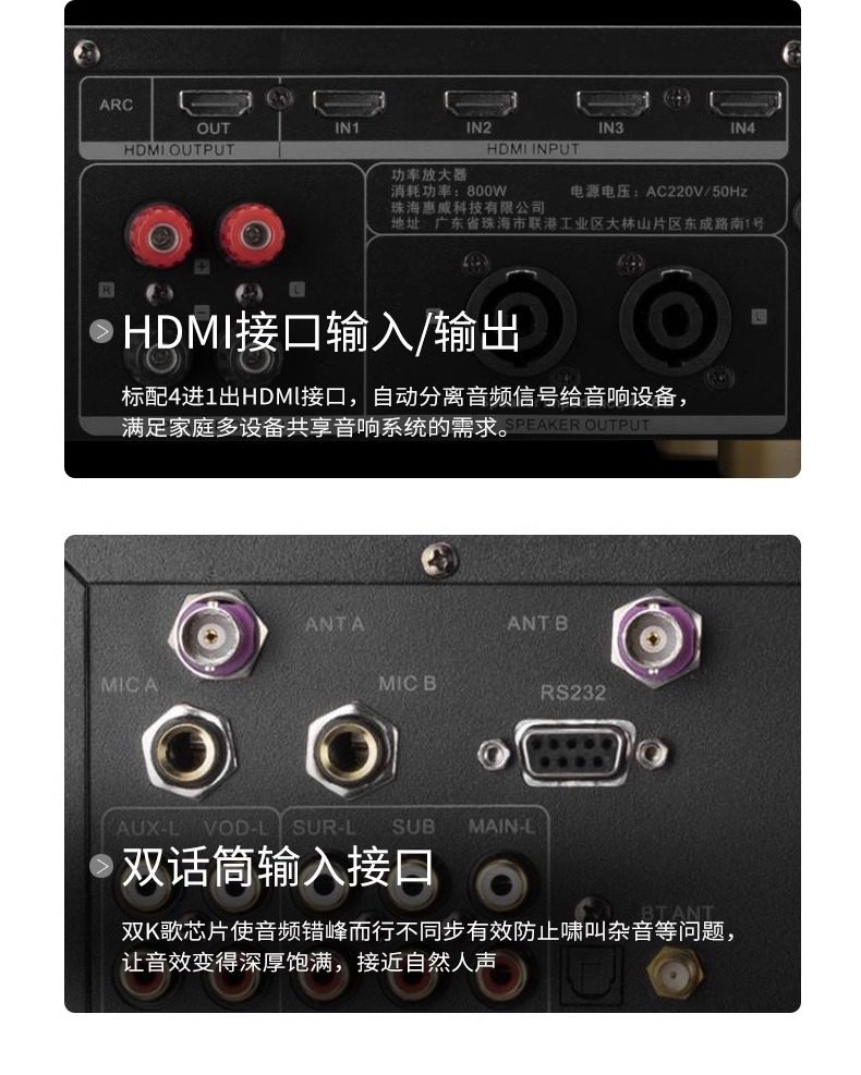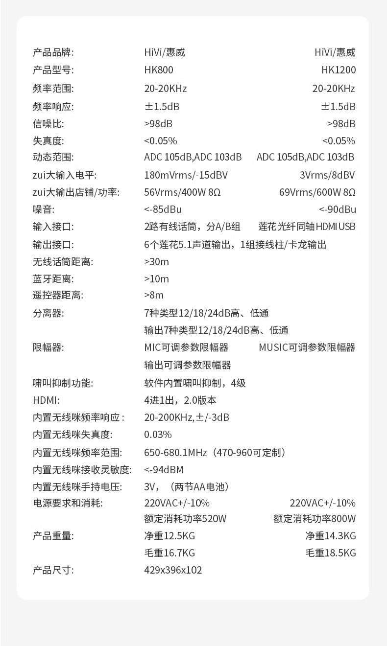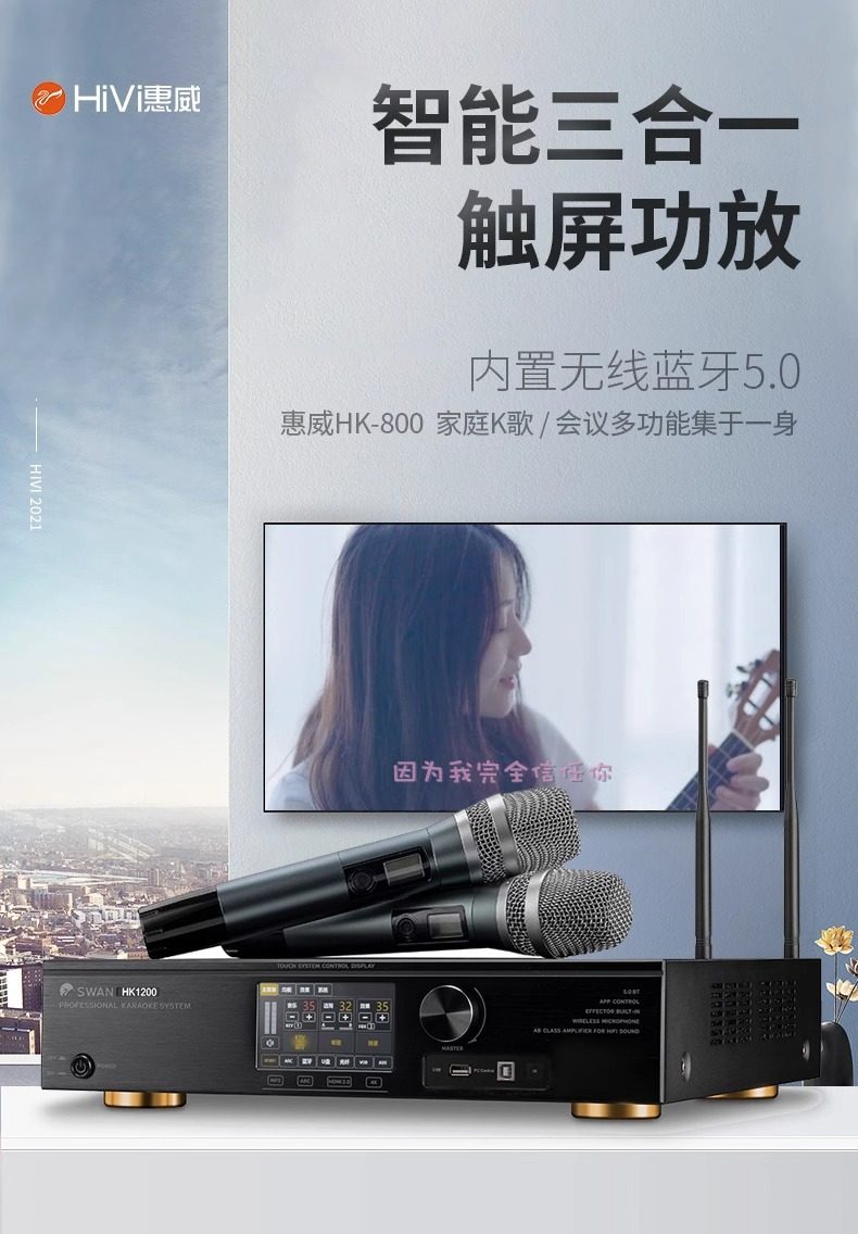 Hivi/hivi HK800 Multifunctional Three-in-One K-Song Power Amplifier Fixed Resistance Conference Power Amplifier with Microphone Effector