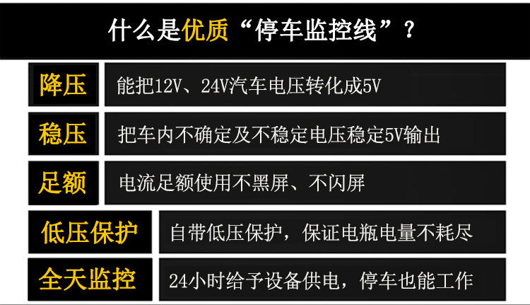 Wholesale driving recorder universal three-core voltage reduction line supports time-shrinking video parking monitoring car power cord 3A